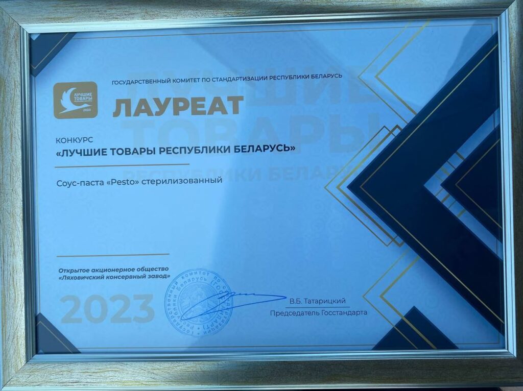 Соус-паста «Pesto» стерилизованный ОАО «Ляховичский консервный завод» признан лауреатом конкурса «Лучшие товары Республики Беларусь» – 2023