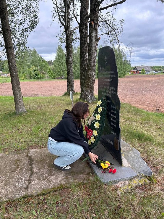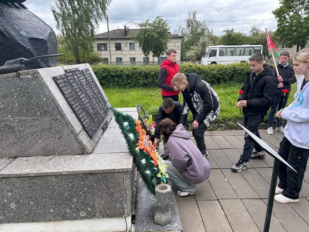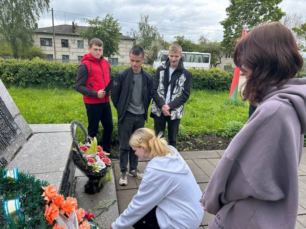 У мемориалов, расположенных в разных уголках района, учащиеся и работники совместно с ветеранской организацией Ляховичского района вспоминали тех, кто ценой своей жизни приближал весну 1945-го года.