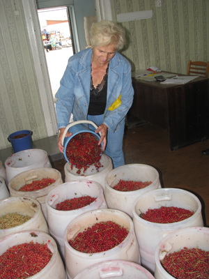 “ЛВ” пацікавіўся, як ідзе нарыхтоўчая кампанія на Ляха-віччыне. Як паведамілі ў райпо, у сістэме спажывецкай кааперацыі раёна працуюць 3 штатныя нарыхтоўшчыкі. У гарачы сезон ім на дапамогу прыцягваюцца яшчэ 2. Што-дзённа, акрамя панядзелка, на рынку ў райцэнтры працуе нарыхтоўчы пункт, дзе кожны жадаючы можа здаць прадукцыю з лесу, дачы, агарода ці сада. Чорныя парэчкі прымаюць па 1500 рублёў, чырвоныя – па 1200, вішню – па 1700, маліну – 2500, чарніцы – па 4200 рублёў. Разлік можна атрымаць адразу на месцы і толькі грашыма. Па словах нарыхтоўшчыка Ігара Ушакова, за мінулы тыдзень нарыхтавана 2 тоны ягад. Начальнік аддзела нарыхтовак райпо Віктар Скіндзер падкрэслівае, што нарыхтоўкай займаюцца і магазіны ў сельскай мясцовасці: сюды можна здаць любыя ягады і атрымаць разлік як грашыма, так і таварам, што маецца ў наяўнасці. На пытанне рэдакцыі колькі ўжо нарыхтавана ягад, райпо запатрабавала ад газеты… пісьмовы запыт, “каб потым не было ніякіх супярэчнасцяў”.