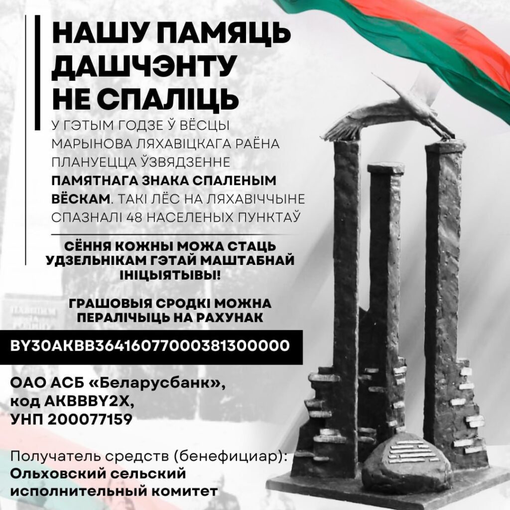 Грамадзянская ініцыятыва па стварэнні памятнага знака спаленым вёскам перамагла ў конкурсе, ініцыяваным абласной асацыяцыяй мясцовых Саветаў дэпутатаў.
