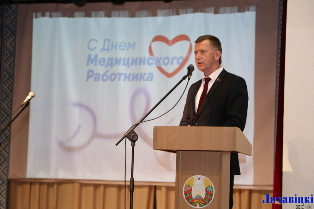 Медиков поздравили с профессиональным праздником депутат Палаты представителей Национального собрания Республики Беларусь по Барановичскому сельскому избирательному округу №7 Георгий Хлебович, который ещё недавно возглавлял Ляховичскую ЦРБ, и первый заместитель председателя Ляховичского райисполкома Василий Пыжик.