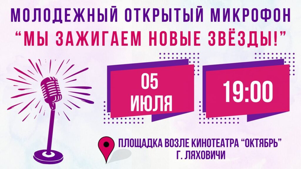 Ляховичская районная организация ОО БРСМ приглашает на открытый микрофон «Мы зажигаем новые звёзды»