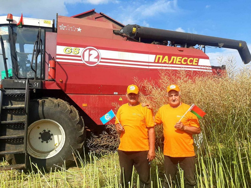 А главное люди — экипажи комбайнов КЗС-1218А Роман Голя и Сергей Подгурский, Виталий Васюкевич и Константин Шнырко. На КЗС-1218 работают Александр Юник и Юрий Станиславович, на КЗС-10К — Сергей Кудравец и Евгений Сморщек. На отвозке зерна задействован водитель МАЗ 6501А8 Владимир Подгурский. Все они в эти знойные дни прилагают все силы, чтобы качественно и без потерь убрать выращенный урожай.