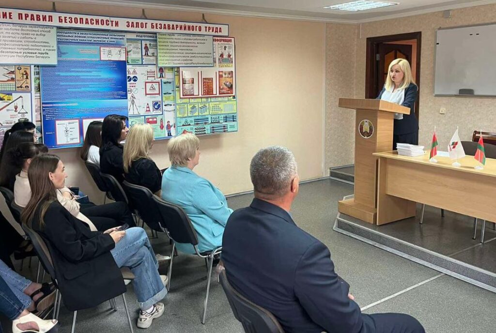 Председатель районной организации “Белая Русь” Наталья Исаханова рассказала коллективу о деятельности Республиканского общественного объединения, остановилась на основных моментах Устава, проектной деятельности, брендовых акциях и мероприятиях.