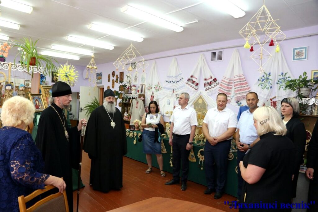 После участия в праздничном богослужении в храме Святой Живоначальной Троицы в агрогородке Дарево Предстоятель Белорусской Православной Церкви познакомился с работой районного ресурсного центра по духовно-нравственному воспитанию обучающихся в Даревской СШ, а также посетил Даревский Дом ремёсел.
