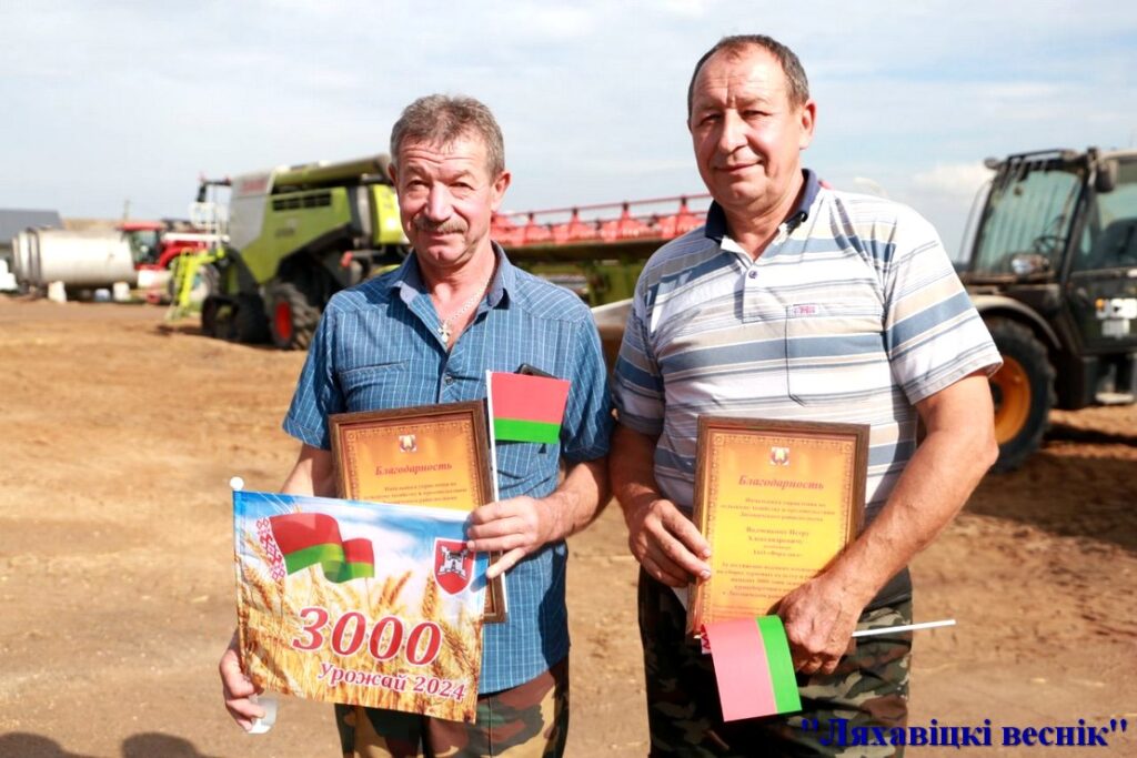 Именно в этом хозяйстве трудятся лидеры районных соревнований на жатве — экипажи Александра Ярошевича и Алексея Романовича, Виктора и Петра Волчецких. Экипажи достигли намолота более 3000 тонн каждый — такую планку ляховичским комбайнерам раньше взять не удавалось!