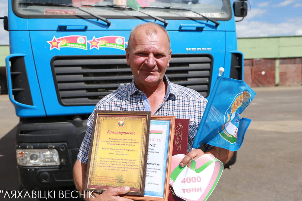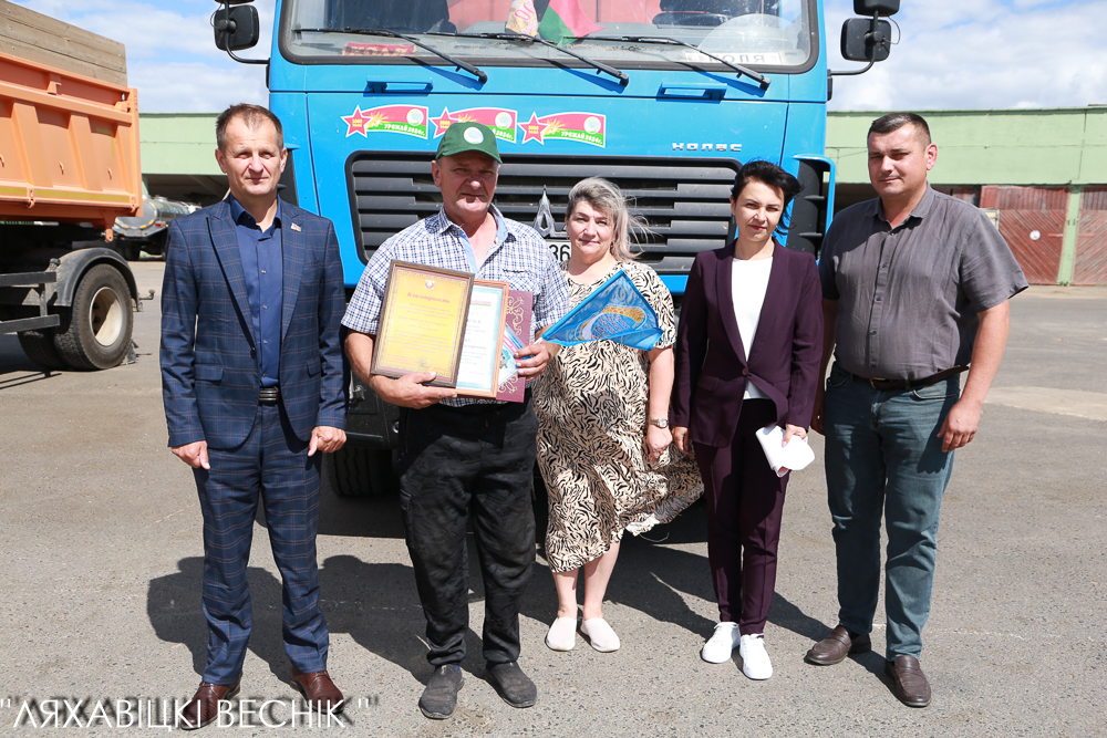 В Ляховичском районе поздравили первого водителя, который перевёз 4000 тон зерна