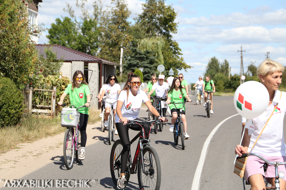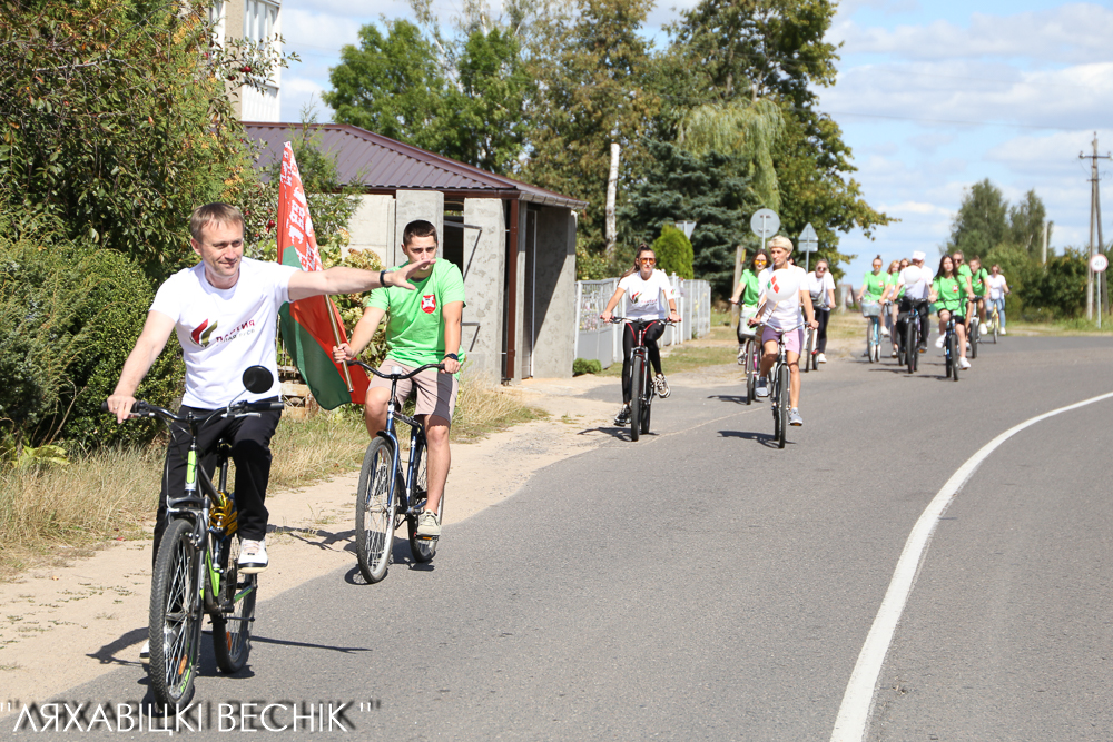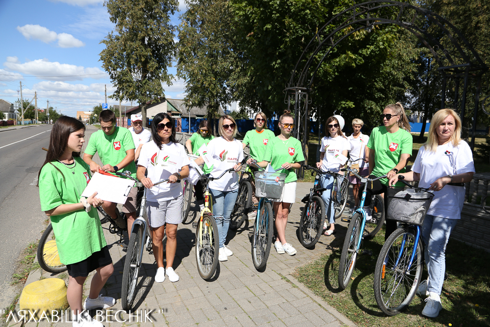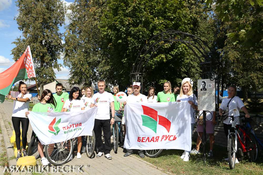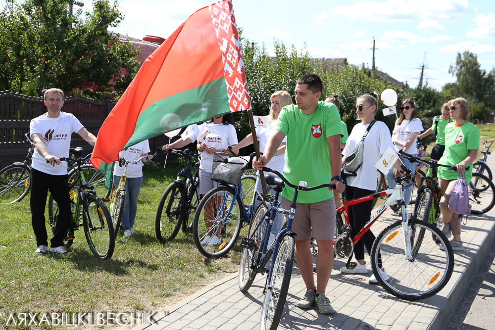 В велопробеге приняли участие активисты районного отделения партии «Белая Русь» и районной организации общественного объединения «Белая Русь» во главе со своими лидерами Олегом Третьяком и Натальей Исахановой, активная молодёжь.