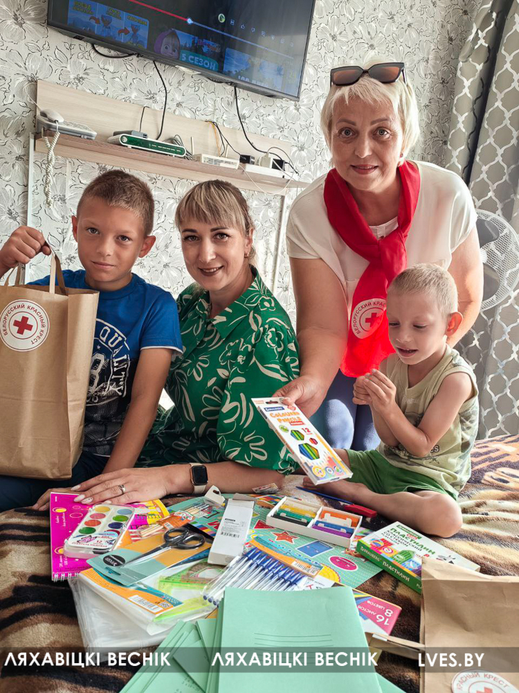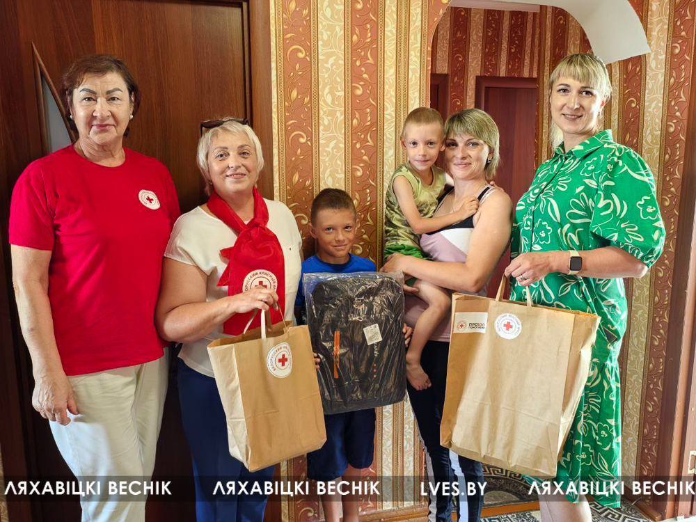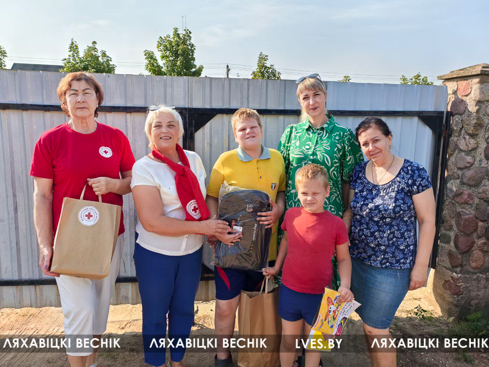 В рамках республиканской акции «Соберём детей в школу» председатель Ляховичской районной организации Белорусского Красного Креста Жанна Лешик, «серебряные» волонтёры Ляховичского ТЦСОН совместно с представителям ООО «Трансэлектрокомплект» посетили на дому многодетные семьи, где воспитываются дети с ограниченными возможностями и вручили им канцелярские принадлежности, рюкзаки, продуктовые наборы.