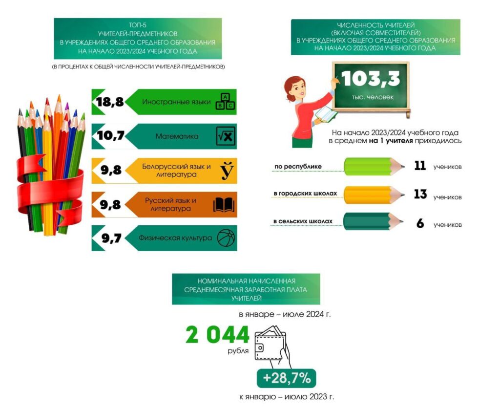 👩🏫 Численность учителей (включая совместителей) в учреждениях общего среднего образования составляют 103,3 тыс.человек.