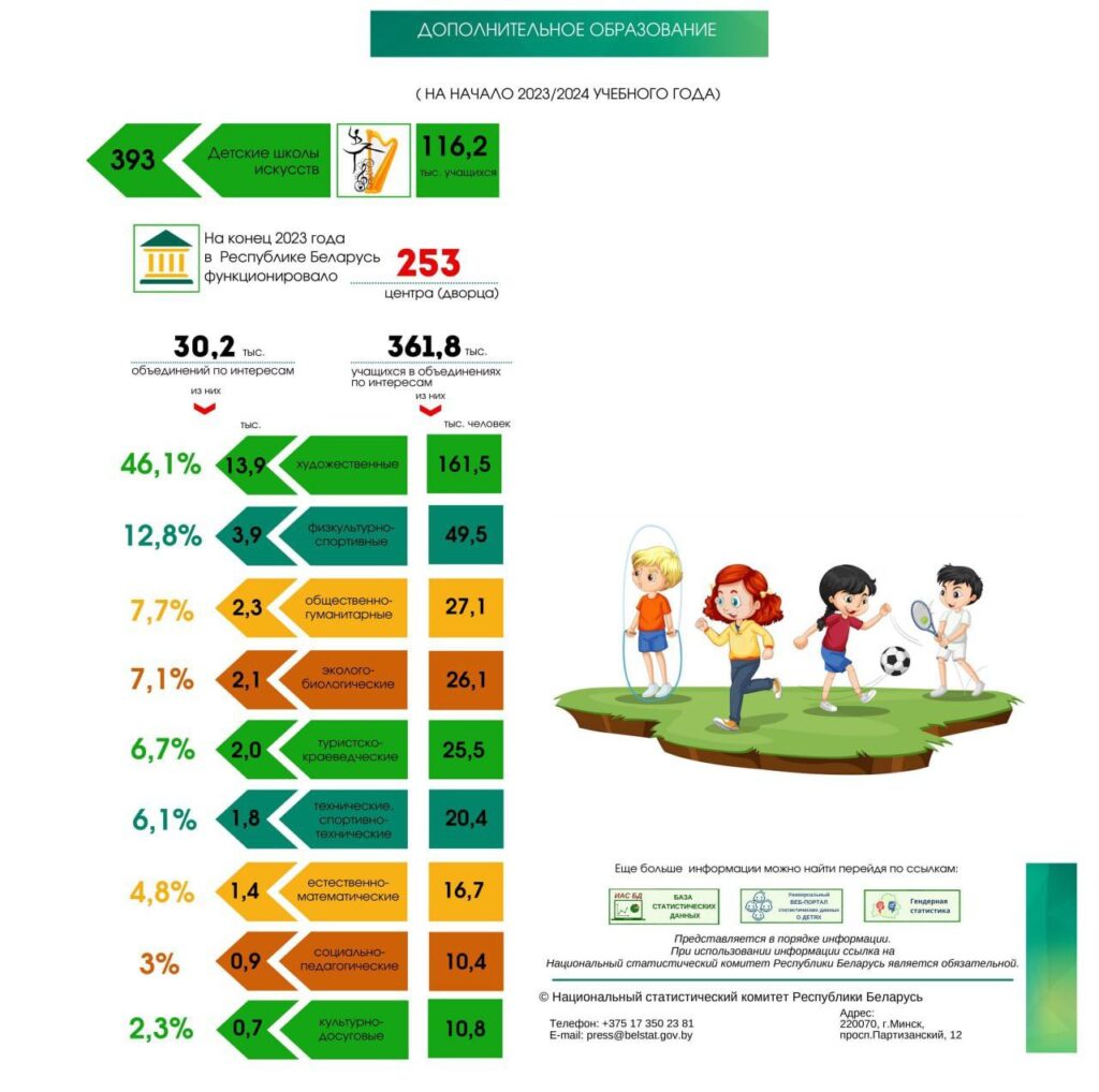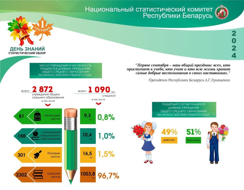 Белстат: В общей численности учащихся в учреждениях общего среднего образования девочки составляют 49%, а мальчики 51%. 👫