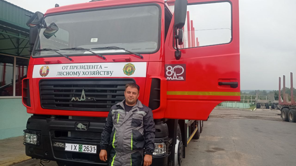 Сразу после окончания торжественной церемонии передачи сортиментовоз от изготовителя — МАЗа — прибыл для регистрации в Ляховичский лесхоз и далее отправляется в помощь на разработку ветровально-буреломной древесины на Гомельщине.