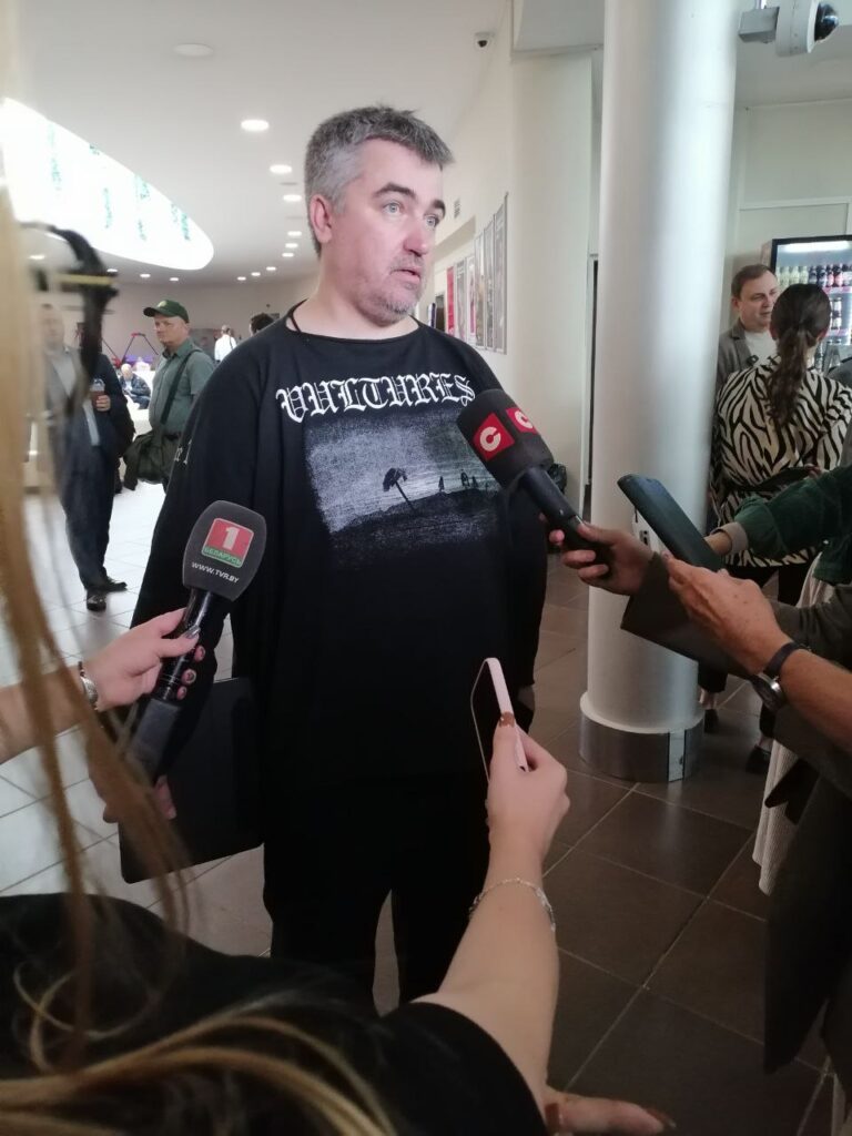 не адмаўляў у просьбе зрабіць сумеснае фота, разгорнута адказваў на пытанні публікі. Фактычна ўвесь час да пачатку сеанса знаходзіўся ў цесным коле журналісцка-глядацкай увагі.