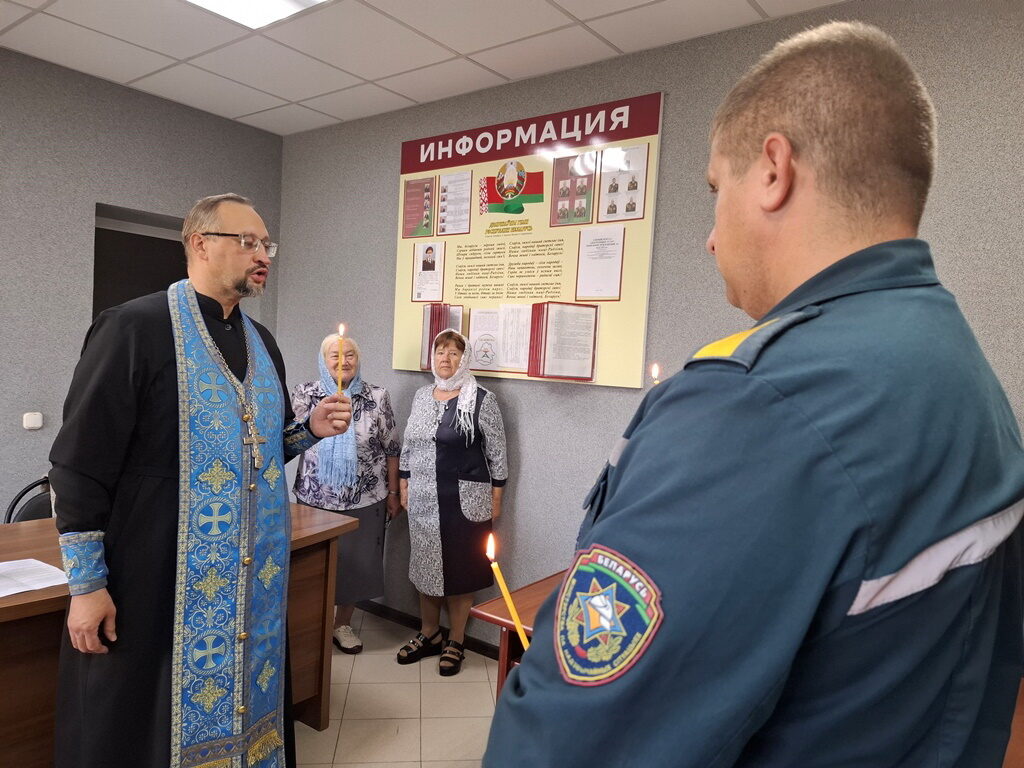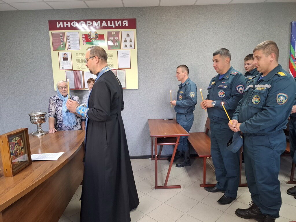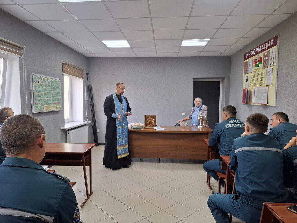 После просмотра фильма личный состав встретился с отцом Сергеем, настоятелем храма Рождества Иоанна Предтечи, который прочитал спасателям проповедь о значении иконы Божьей Матери «Неопалимая Купина» о необходимости связи Бога и человека, произвел обряд освещение личного состава. В этот день представители Ляховичского районного отдела по чрезвычайным ситуациям будут принимать участие в районных мероприятиях и на концертах организованных в г.Минске и в г.Кобрине.