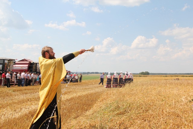 Удзельнікі жніва атрымалі царкоўнае блаславенне. Быў адслужаны кароткі малебен “на пачатак усякай добрай справы”.
