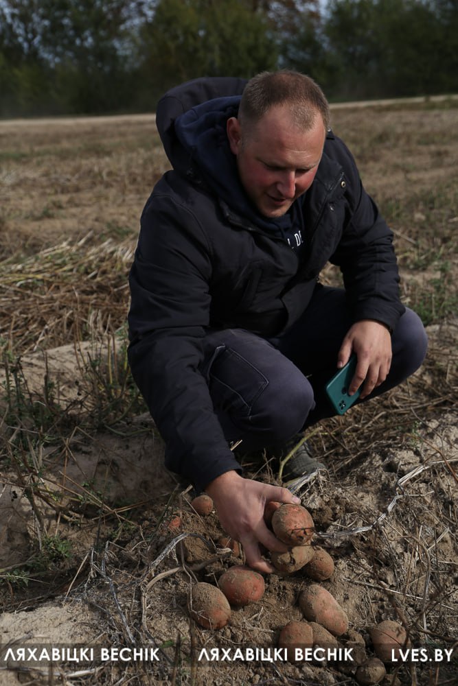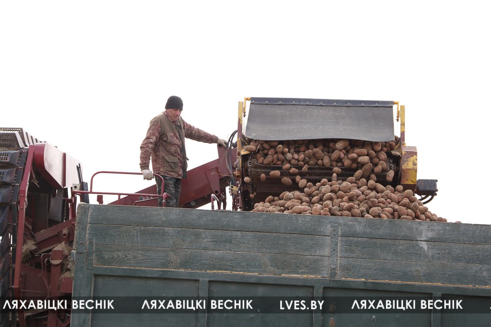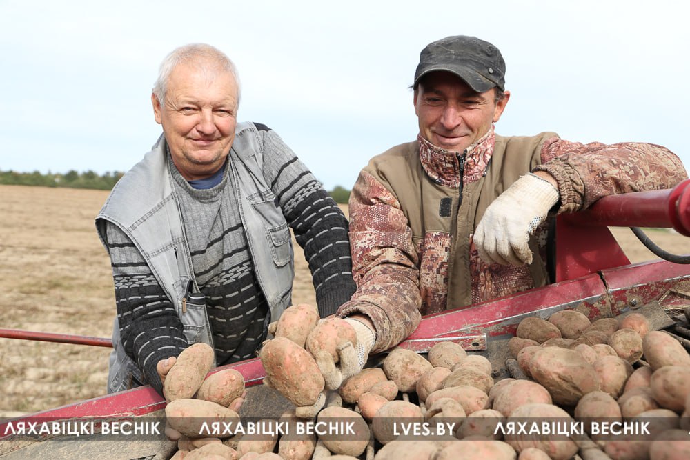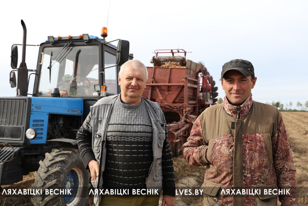 Сегодня в поле работает картофелеуборочный комбайн под управлением опытного механизатора Сергея Турко. В помощниках – слесарь МТК «Подлесье» Юрий Грицкевич