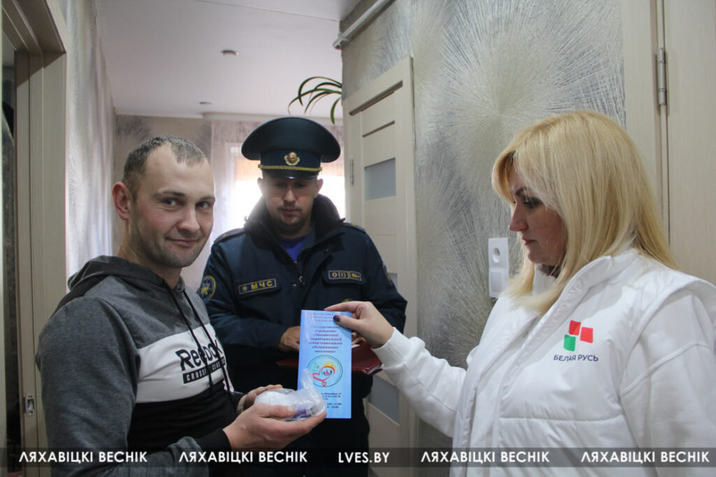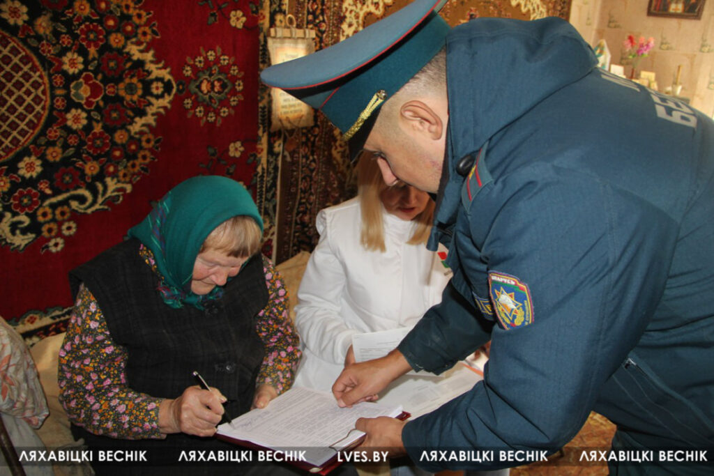 Корреспондент «ЛВ» стал свидетелем профилактической работы, которую проводит РОЧС и ТЦСОН, а также запечатлел кадры вручения одинокой сельчанке и многодетной семье районной организацией «Белая Русь» автономного пожарного извещателя.