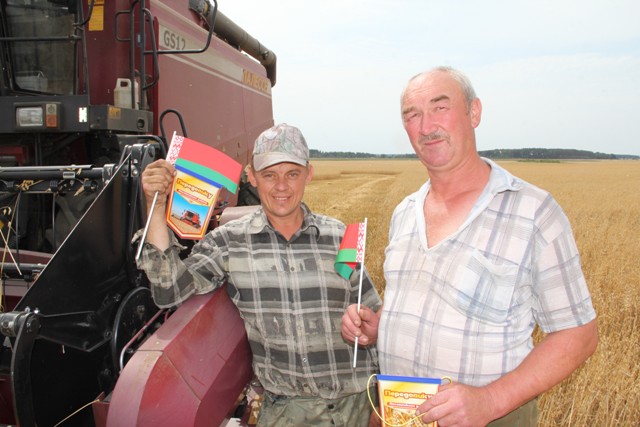 Напружаную працу экіпажа збожжаўборачнага камбайна ЗАТ “Белпрампрыбор” у панядзелак на кароткую паўзу паставілі госці, якія прыехалі павіншаваць адных з першых ”тысячнікаў” раёна. Палявы дуэт у складзе старшага камбайнера Міхаіла Зубіка і камбайнера Аляксандра Карпіевіча на камбайне КЗС -1218 намалаціў на той момант 1069 тон збожжа. На сёлетніх палетках, сцвярджаюць, гэта далёка не мяжа. Ураджайнасцю збожжавых у 47,1 цэнтнера з гектара ў гаспадарцы задаволены – ледзь не на 20 цэнтнераў з гектара перакрылі мінулагодні паказчык.