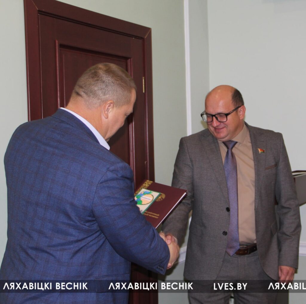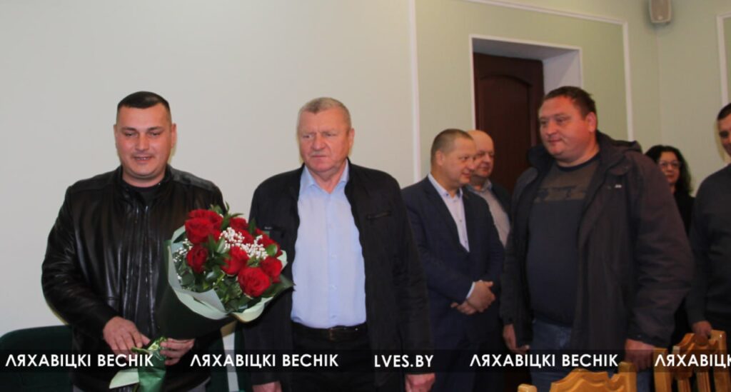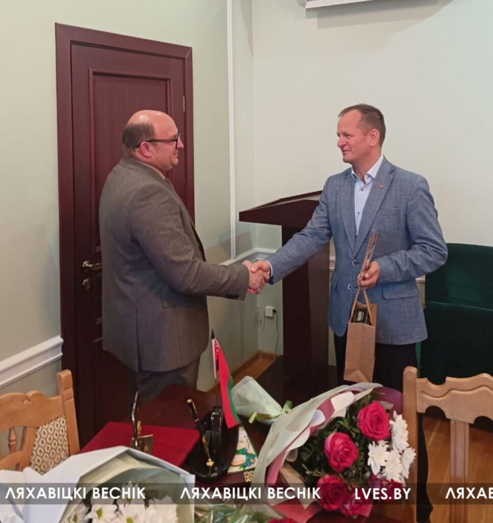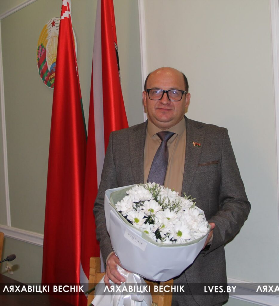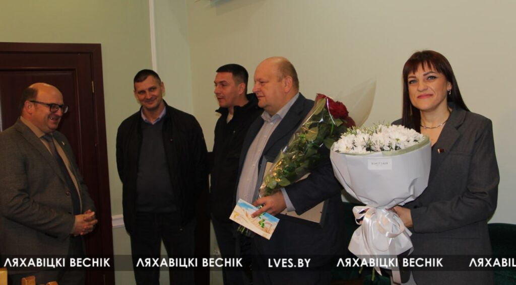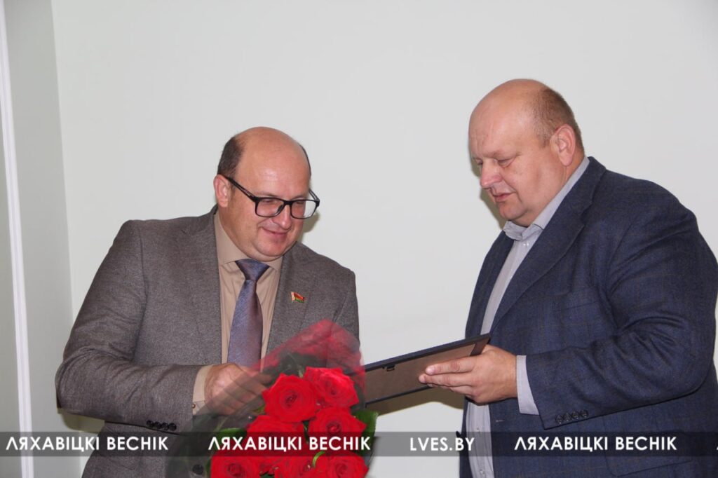 Руководителя одного из лучших сельхозпредприятий Ляховичского района с 50-летием поздравили председатель районного исполнительного комитета Николай Мороз, коллектив управления по сельскому хозяйству и продовольствию райисполкома во главе с первым заместителем председателя райисполкома Василием Пыжиком, районный филиал Брестского областного агропромышленного союза и районная организация профсоюза работников АПК, коллеги.