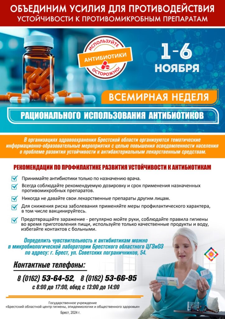С 1 по 6 ноября 2024 года в Беларуси проводится Всемирная неделя рационального использования антибиотиков