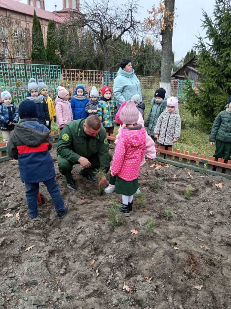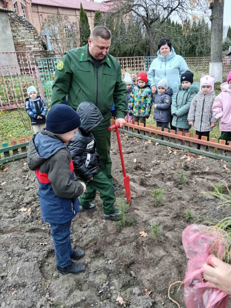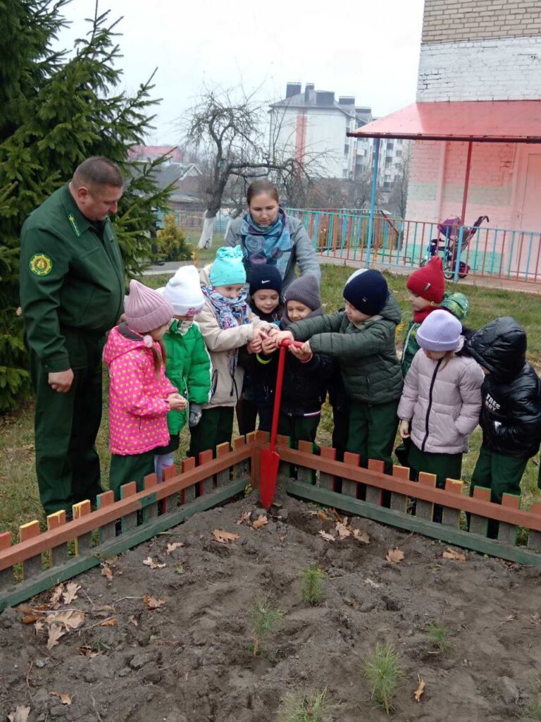 Сегодня в детском саду №2 г. Ляховичи в рамках акции «Дай лесу новое жыццё!» для воспитанников дошкольного лесничества проведен мастер-класс по посадке лесных культур с помощью меча Колесова.