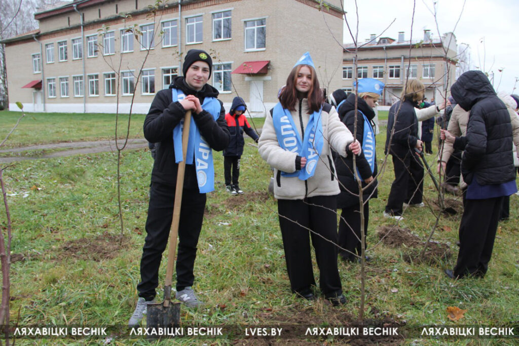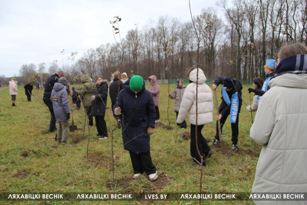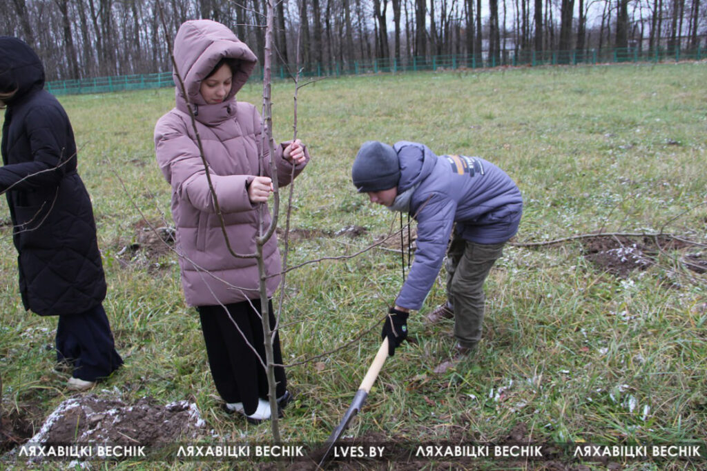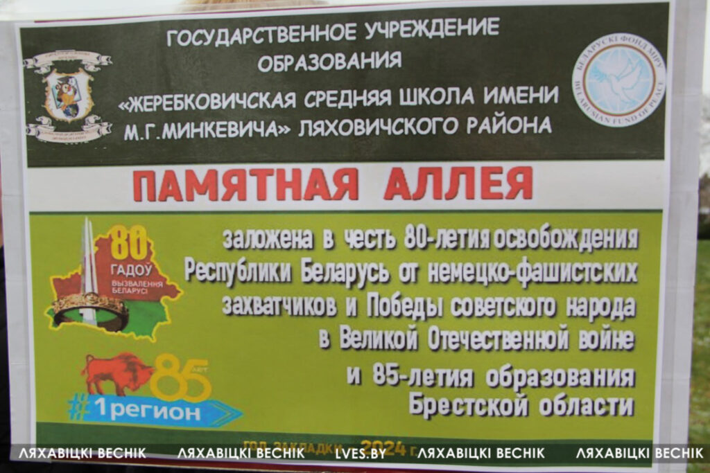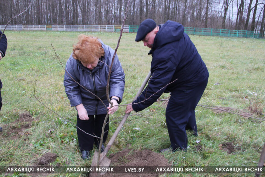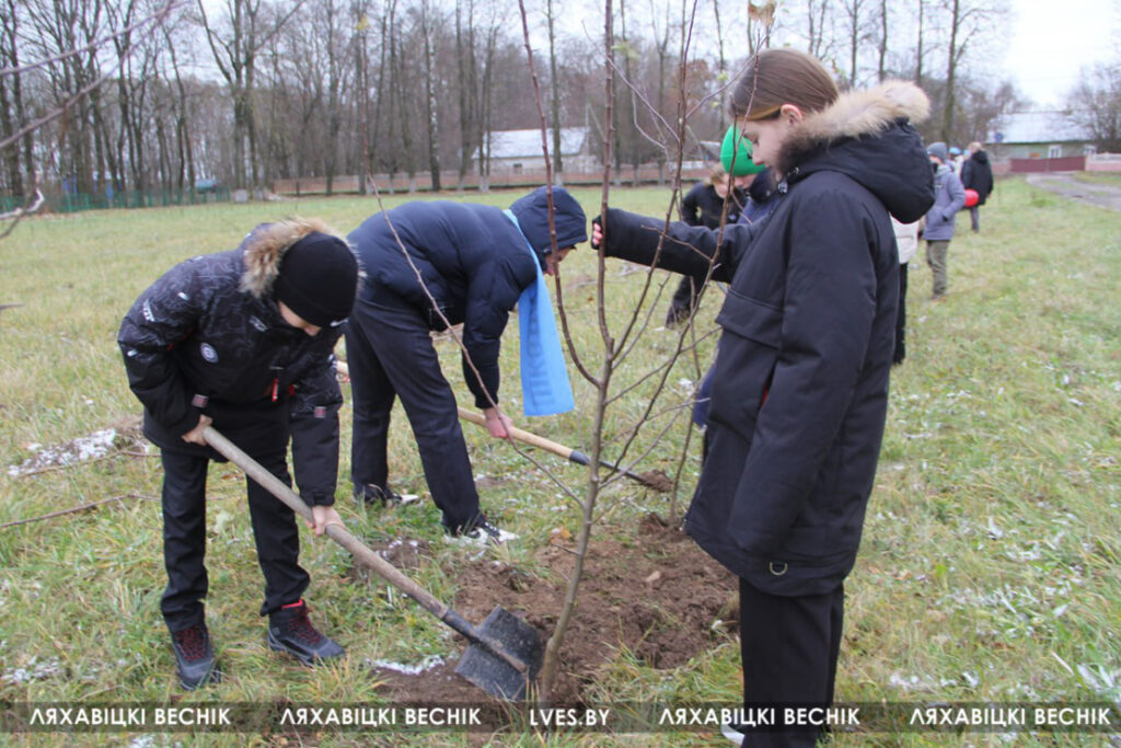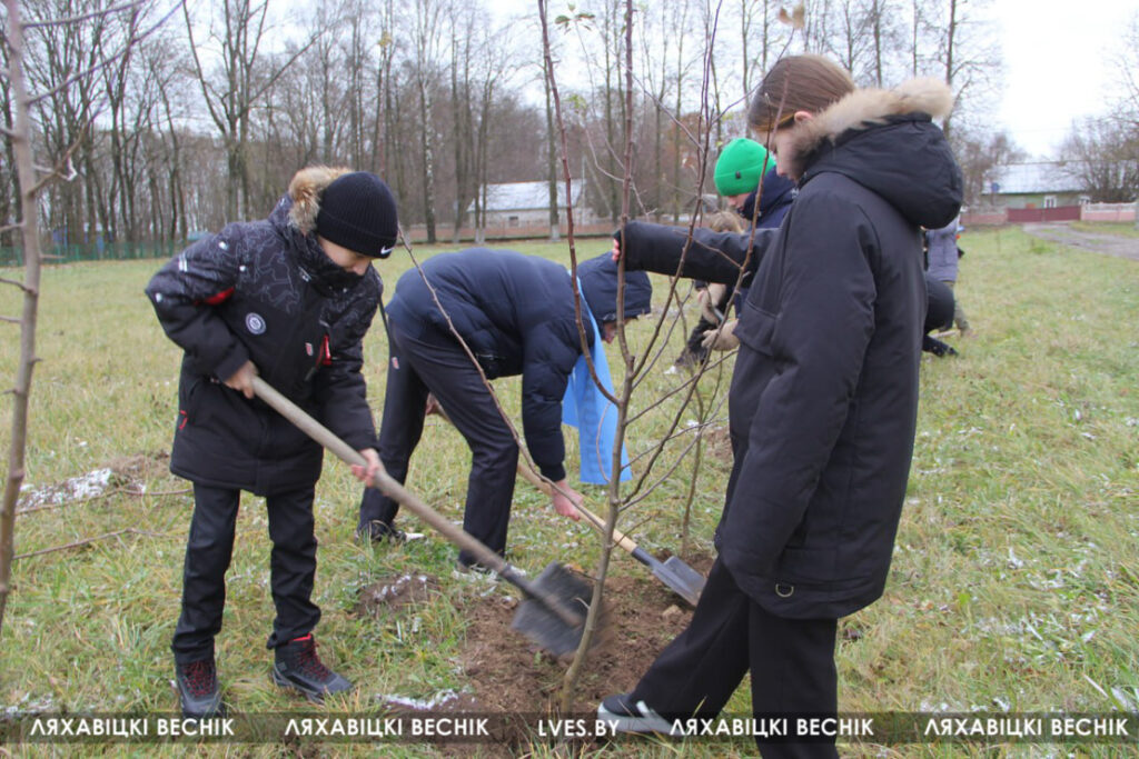 Учащиеся Жеребковичской СШ вместе с педагогами и гостями праздника заложили памятную аллею из 85 яблонь