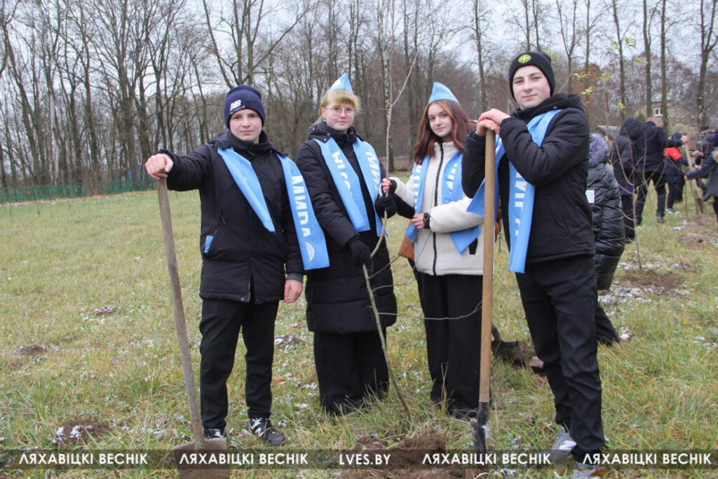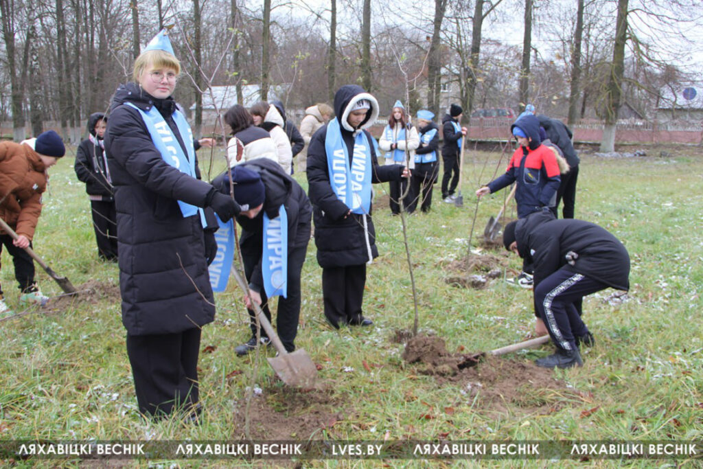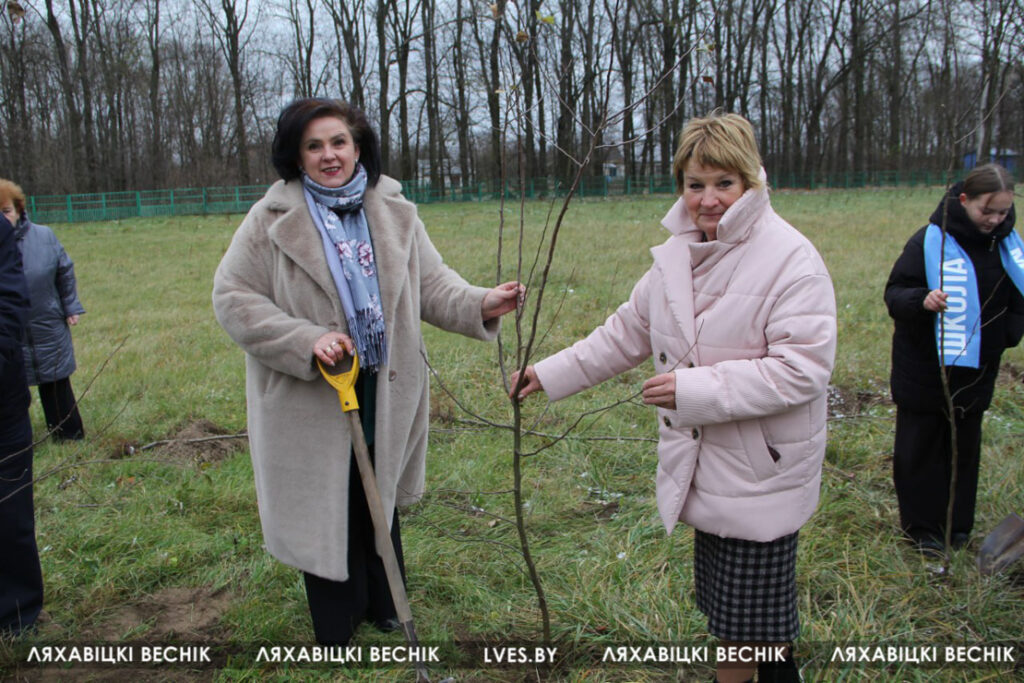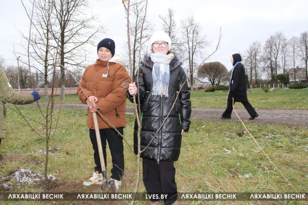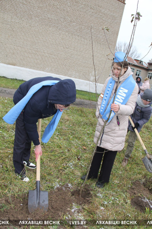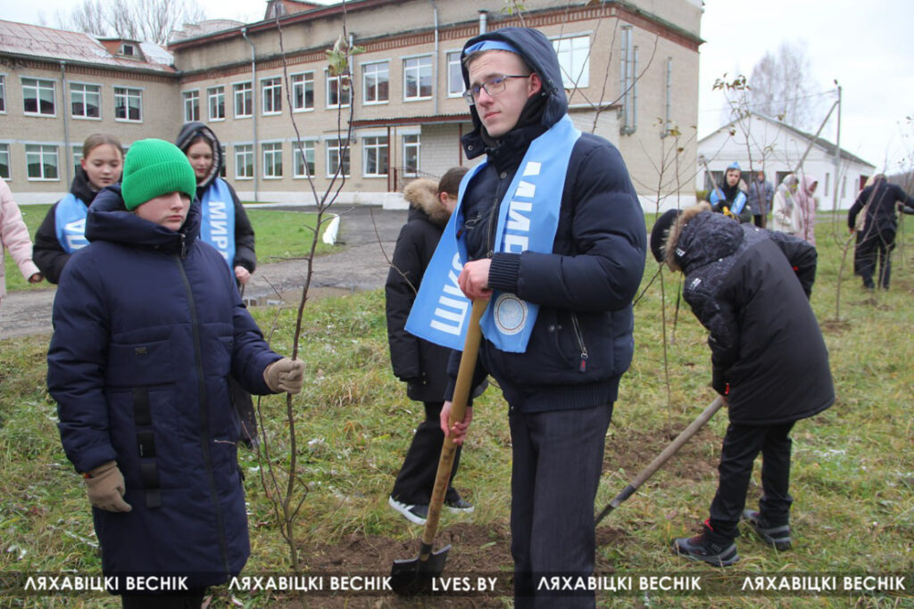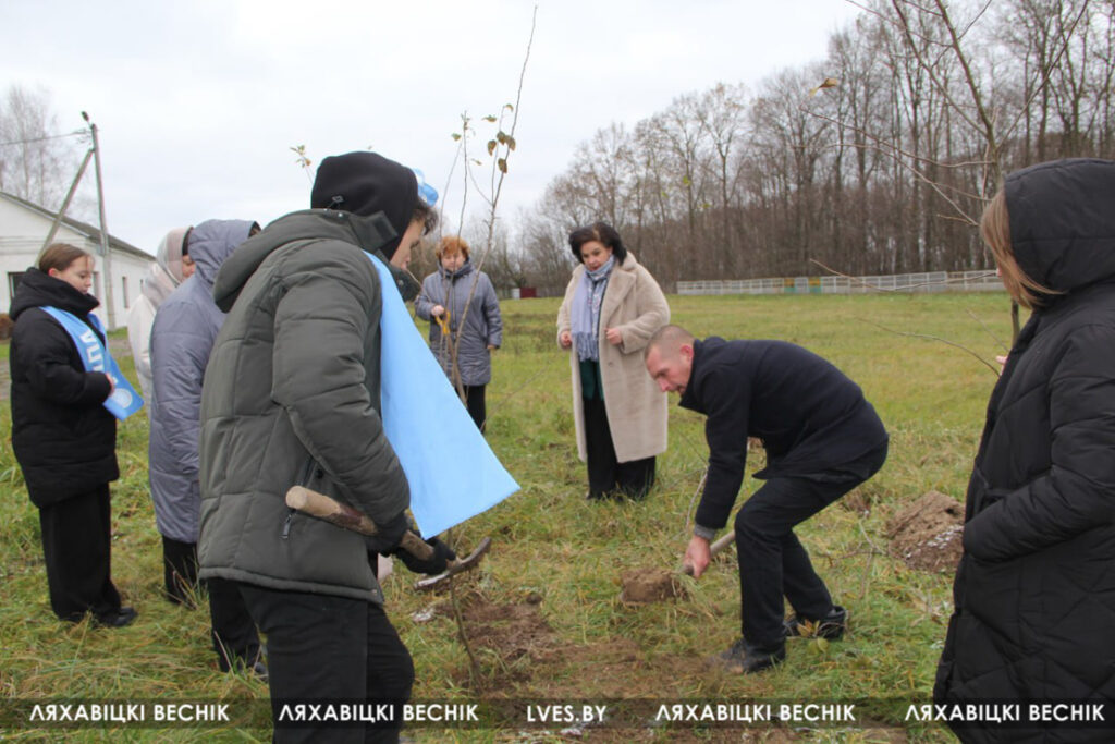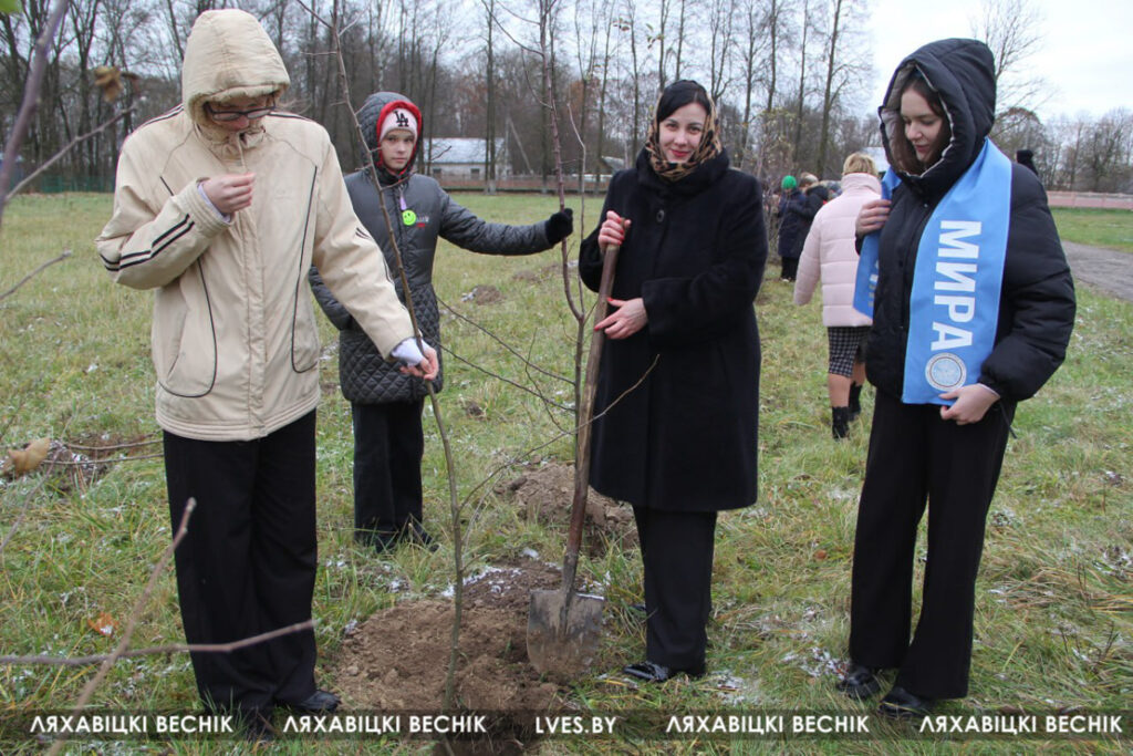 Учащиеся Жеребковичской СШ вместе с педагогами и гостями праздника заложили памятную аллею из 85 яблонь