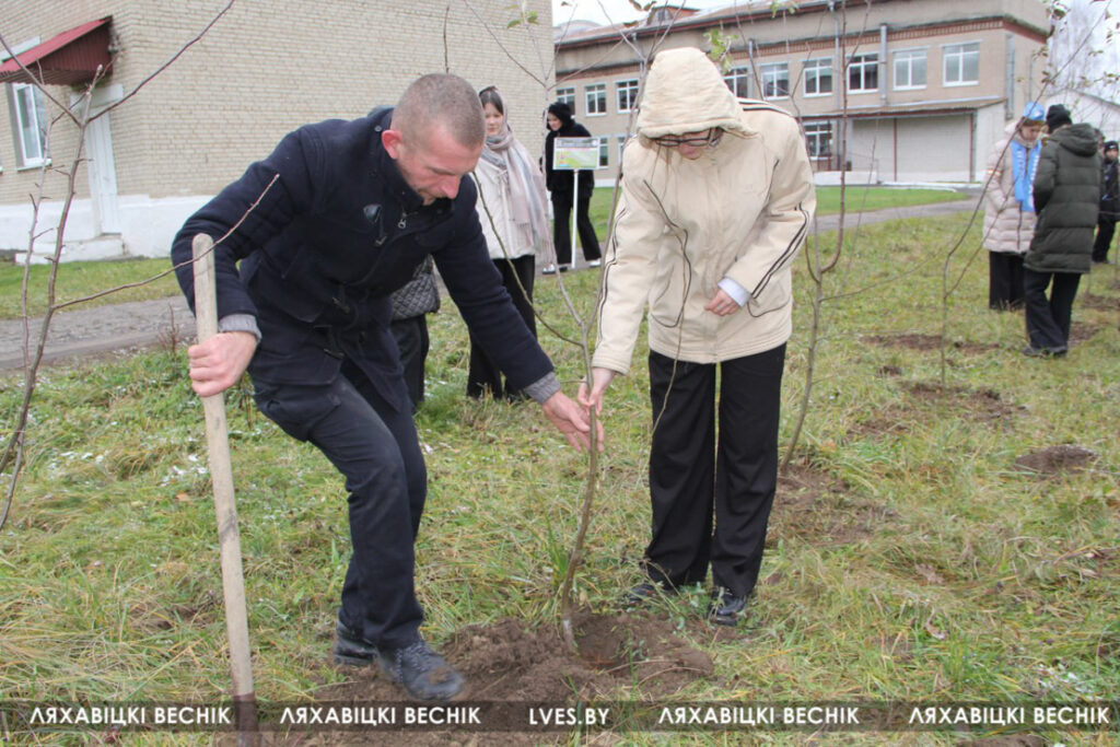 Саженцы из личного подсобного хозяйства подарил школе житель деревни Потаповичи Виталий Янкович, он же дал дельные советы при посадке молодых деревцев.