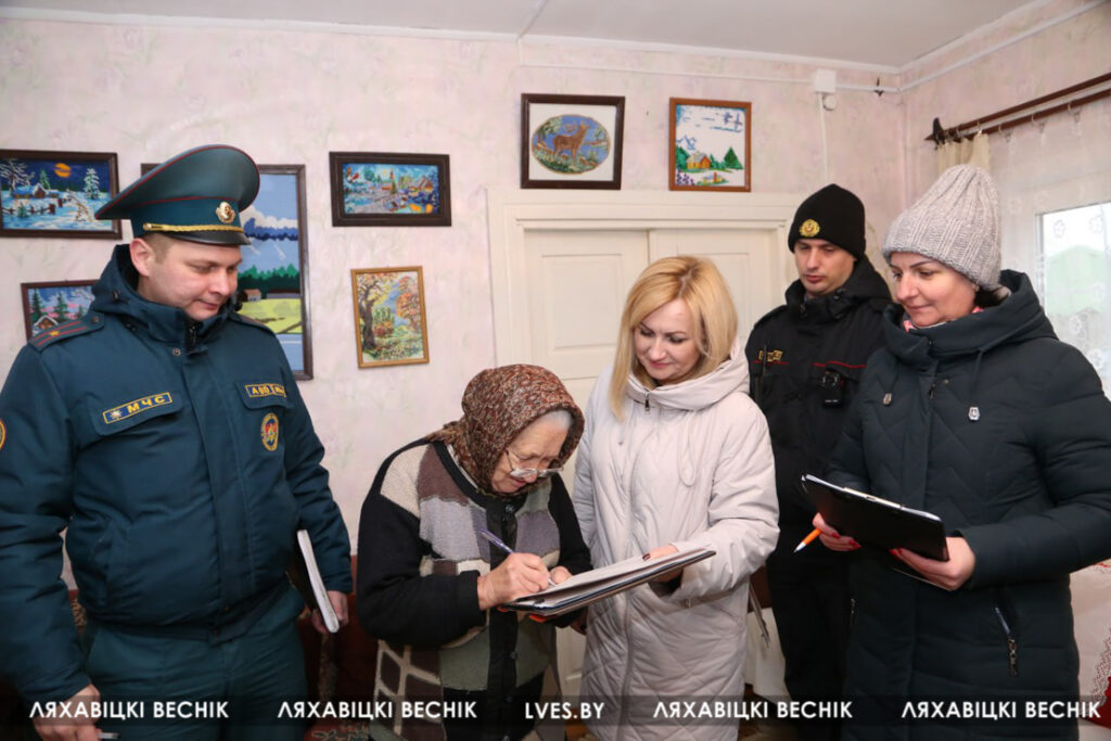 71-гадовая Станіслава Канстанцінаўна жыве з сынам і адзначае, што бяспецы надае вялікую ўвагу. У мінулы раз назіральная камісія рэкамендавала замяніць сілкавальны элемент у АПА, і заданне было аператыўна выканана. Намеснік начальніка РАНС Кірыл Красоўскі абследуе гарышча, цэласнасць корпуса печкі, спраўнасць праводкі і г. д. Загадчыца аддзялення першаснага прыёму, аналізу, інфармавання і прагназавання ТЦСАН Наталля Ісаханава ўручыла тэматычны буклет і растлумачыла ўмовы прадастаўлення сацыяльных паслуг, якія аказвае ТЦСАН.