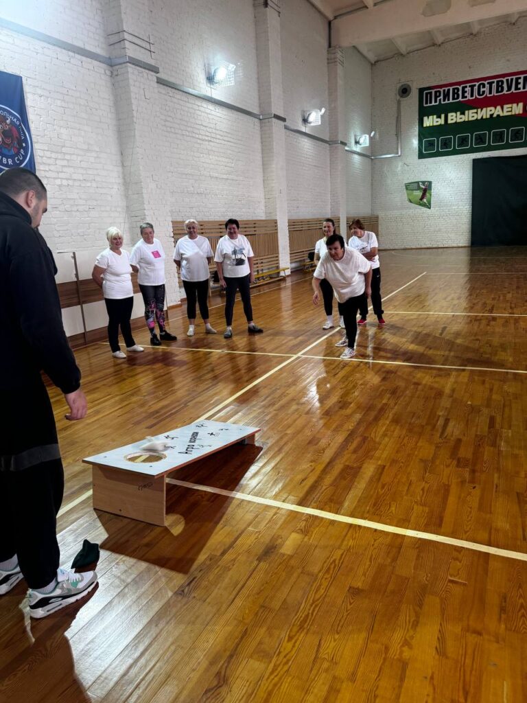 В спортландии приняли участие две команды: «Девчата» (посетители группы общефизической подготовки «Золотой возраст») и «Ловкие ребята» (ГУ «Кривошинский социальный пансионат «Репихово»).