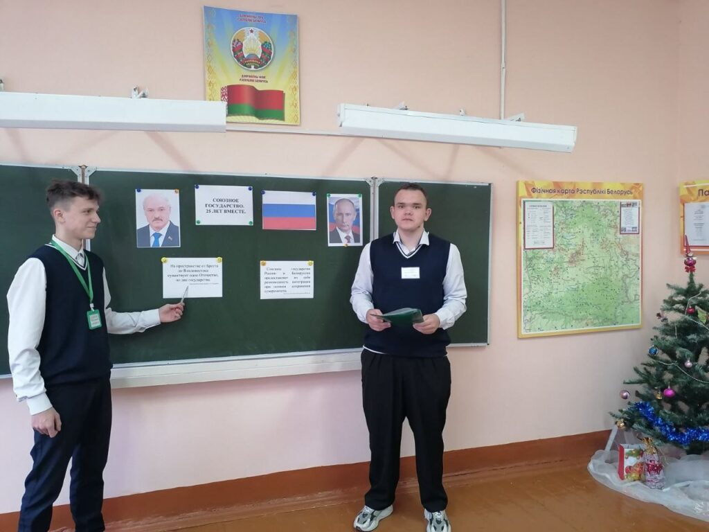 В Туховичской СШ провели провели единый информационный час в форме экскурса в историю «Союзное государство. 25 лет вместе»