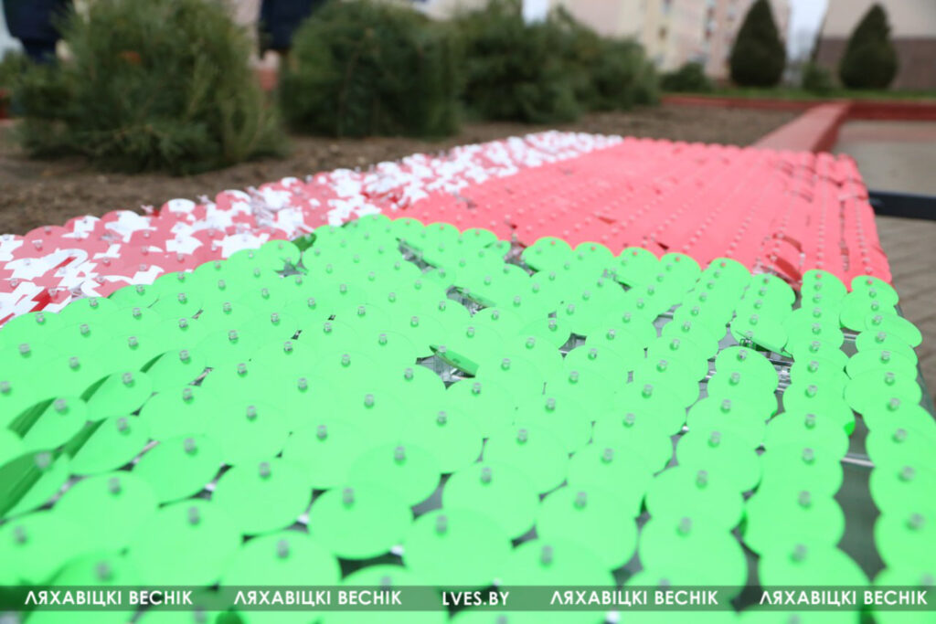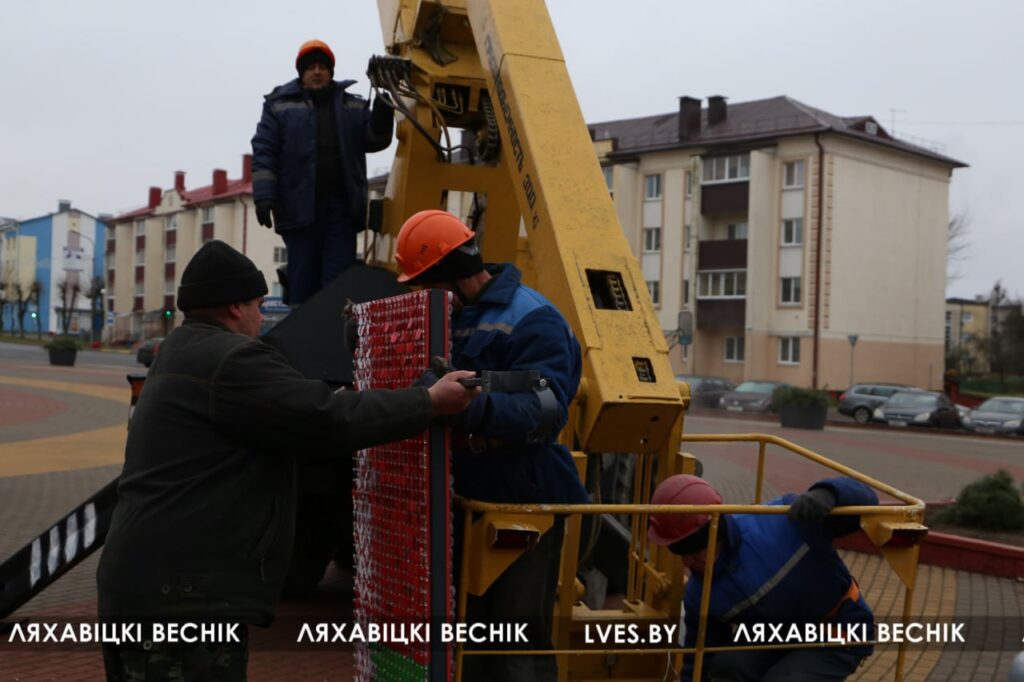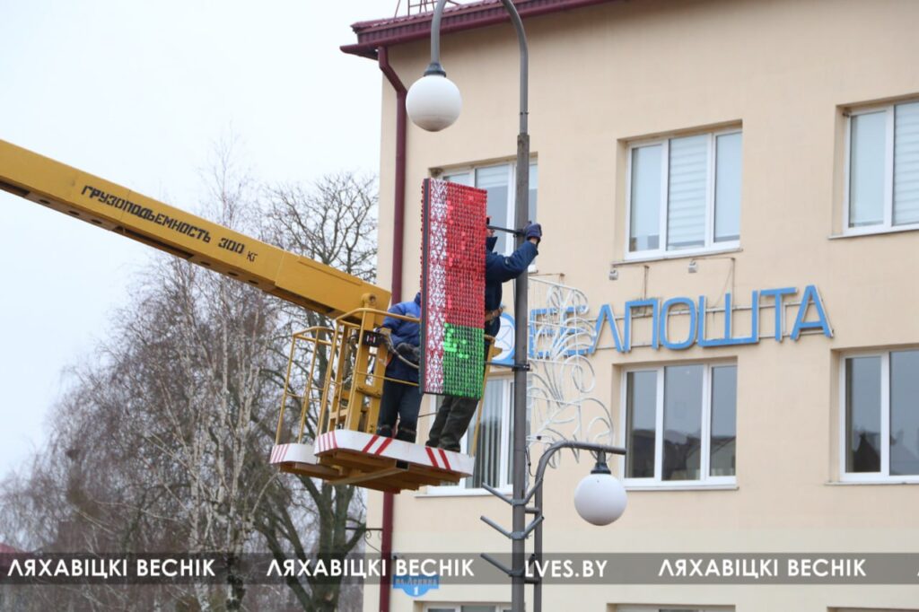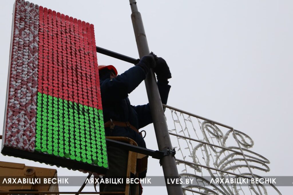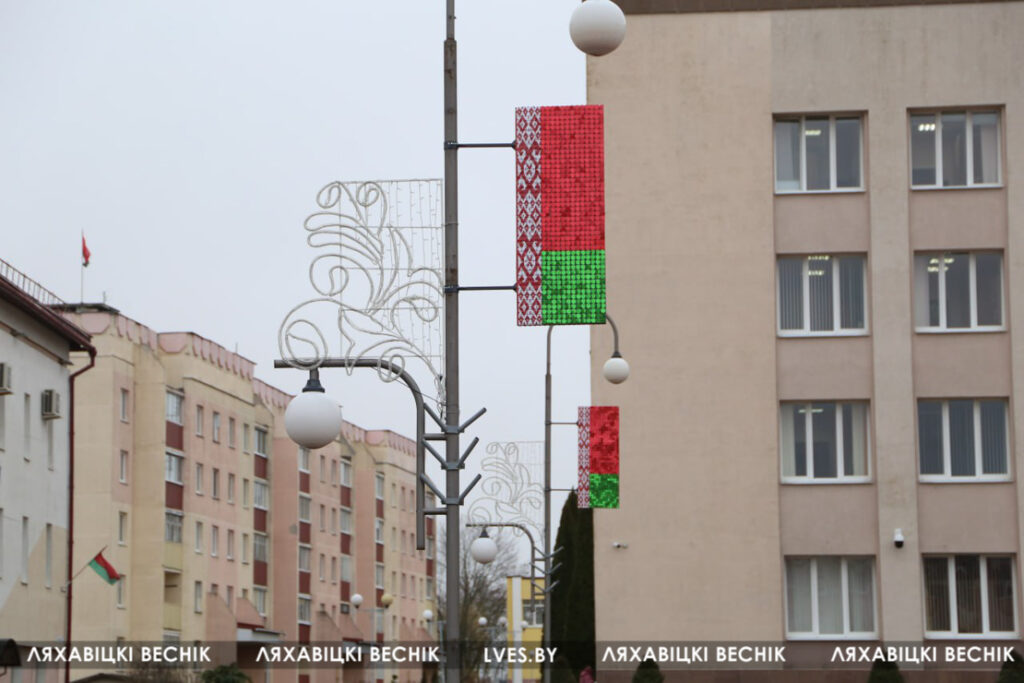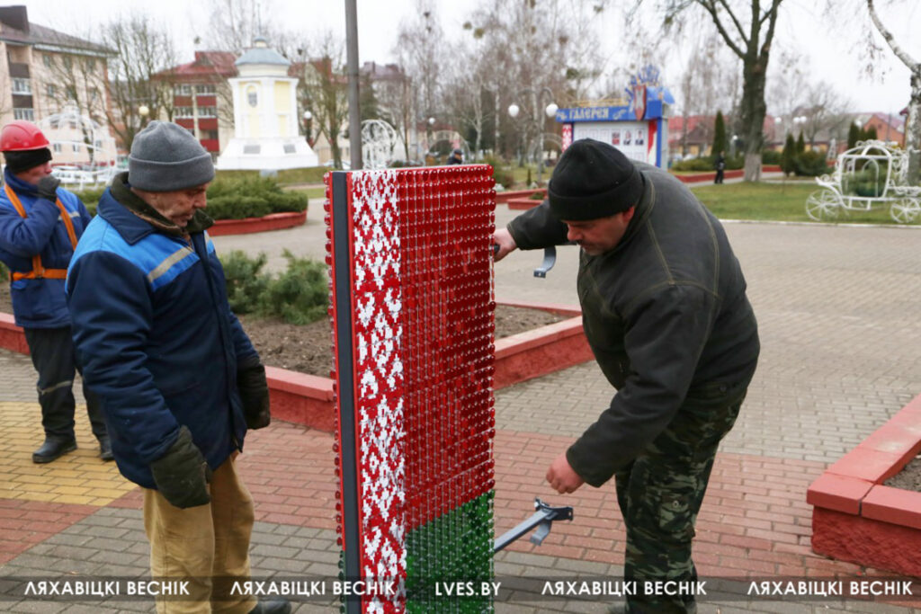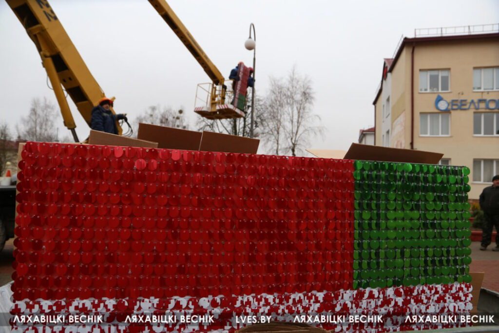 Городские площади в Ляховичах в эти декабрьские дни расцвели в цветах белорусского флага.