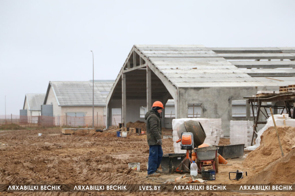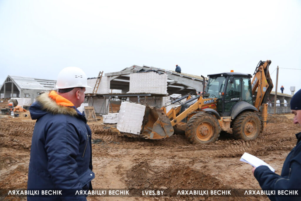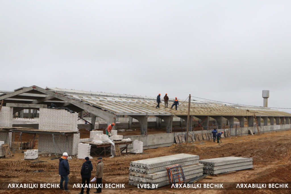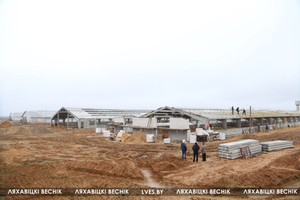 Пасля знятага ў межах пляцоўкі ўрадлівага слоя глебы абутак адчувае ўвесь некамфорт падлескага гліназёму, з’яўляецца неабходнасць праяўляць спрыт у пошуку больш-менш сухіх лакацый для перамяшчэння для агляду таго, што ўжо зроблена, і слухаць тлумачэнні спецыялістаў аб тым, дзе і чаго не хапае. А зроблена нямала, асабліва з улікам таго, што ўзвядзенне комплексу жывёлагадоўчых аб’ектаў распачыналася параўнальна нядаўна – у мінулым ліпені. Два асноўныя будынкі (а гэта кароўнік на 250 галоў жывёлы і цялятнік на такую ж колькасць пастановачных месцаў маладняку) выглядаюць фактычна завершанымі. Як і размешчанае