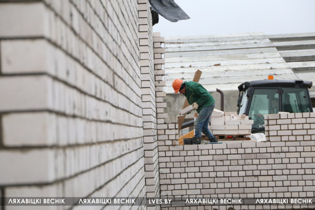 – Актыўна працуем. Сёння, напрыклад, на аб’екце задзейнічана амаль два дзясяткі работнікаў. Сярод іх муляры, цесляры-бетоншчыкі, страхары, электразваршчык і некаторыя іншыя спецыялісты. Наша арганізацыя сярэдняя. Касцяк – каля сотні работнікаў, а астатніх набіраем па меры неабходнасці, у залежнасці ад наяўнасці і характару заказаў. Зараз, напрыклад, прынялі на работу некалькі вашых землякоў, – тлумачыць галоўны на пляцоўцы – прараб