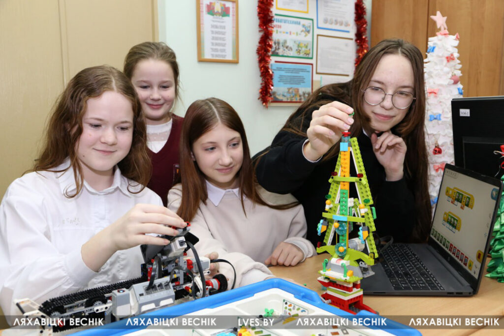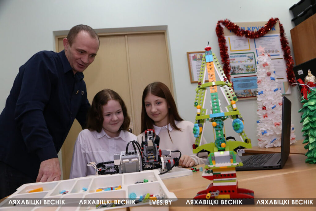…Напярэдадні навагоддзя пакой аб’яднання па інтарэсах нагадвае навагоднюю майстэрню – навучэнцы заняты праграмаваннем і зборкай тэхнаёлак. Святочныя «дрэвы» ўвасабляюць фантазію аўтараў, якія бачаць іх не звычайнымі,