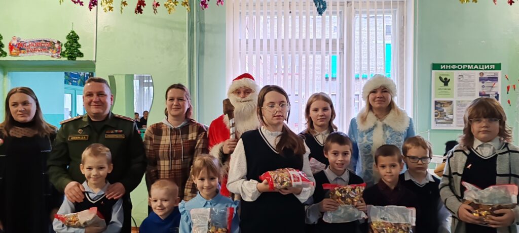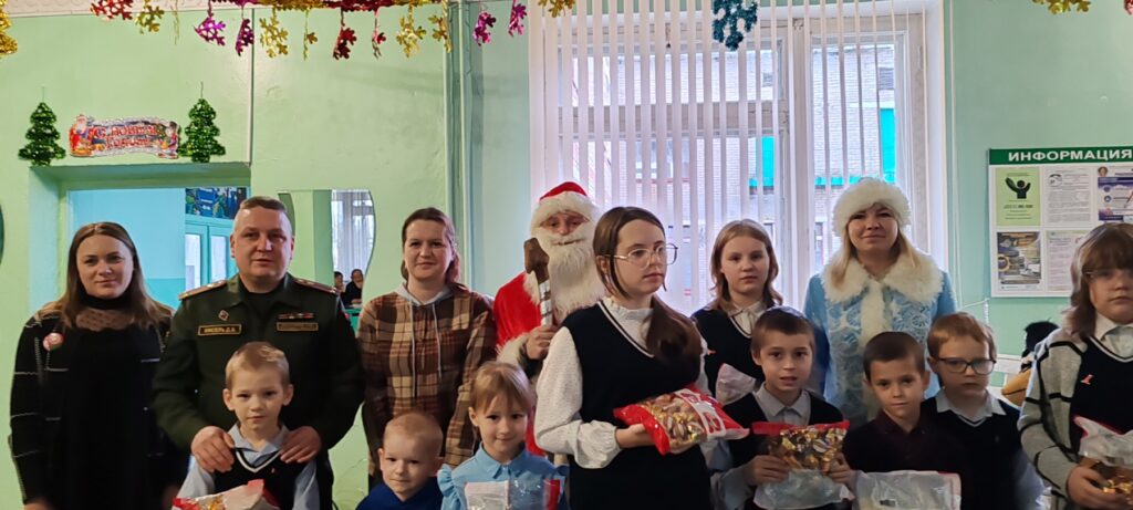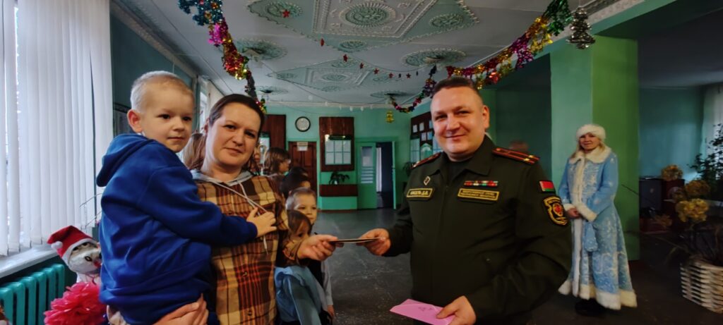 Военнослужащие 230-го общевойскового полигона поздравили учащихся Туховичской СШ Ляховичского района с новогодними праздниками