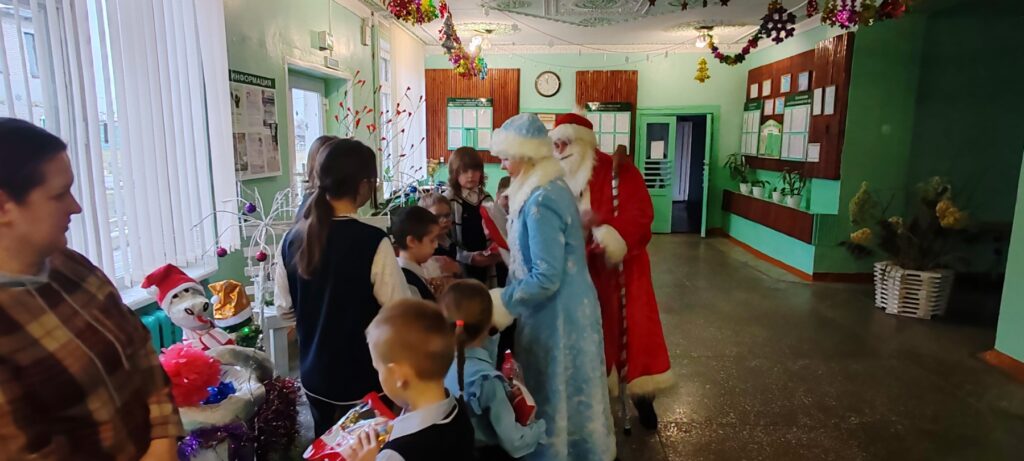 Вместе с ребятами окунулись в атмосферу праздника и волшебства. Какой же праздник без Деда Мороза и Снегурочки, в роль которых вжились начальник клуба 23 –го общевойскового полигона Павел Цуприк и уполномоченное лицо по охране труда Татьяна Герасименя.