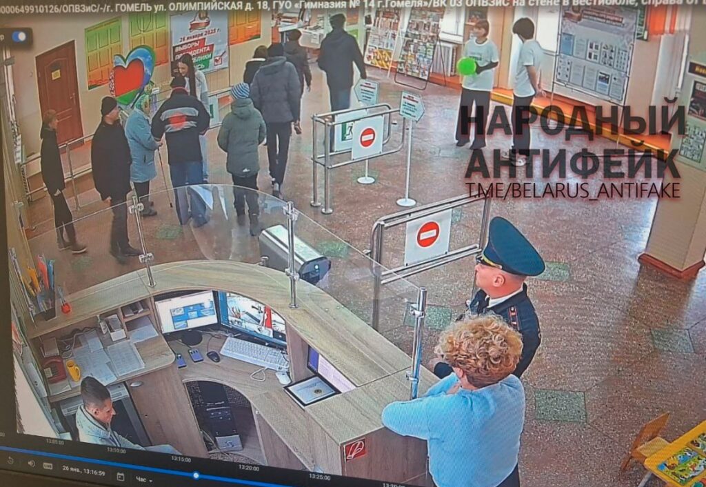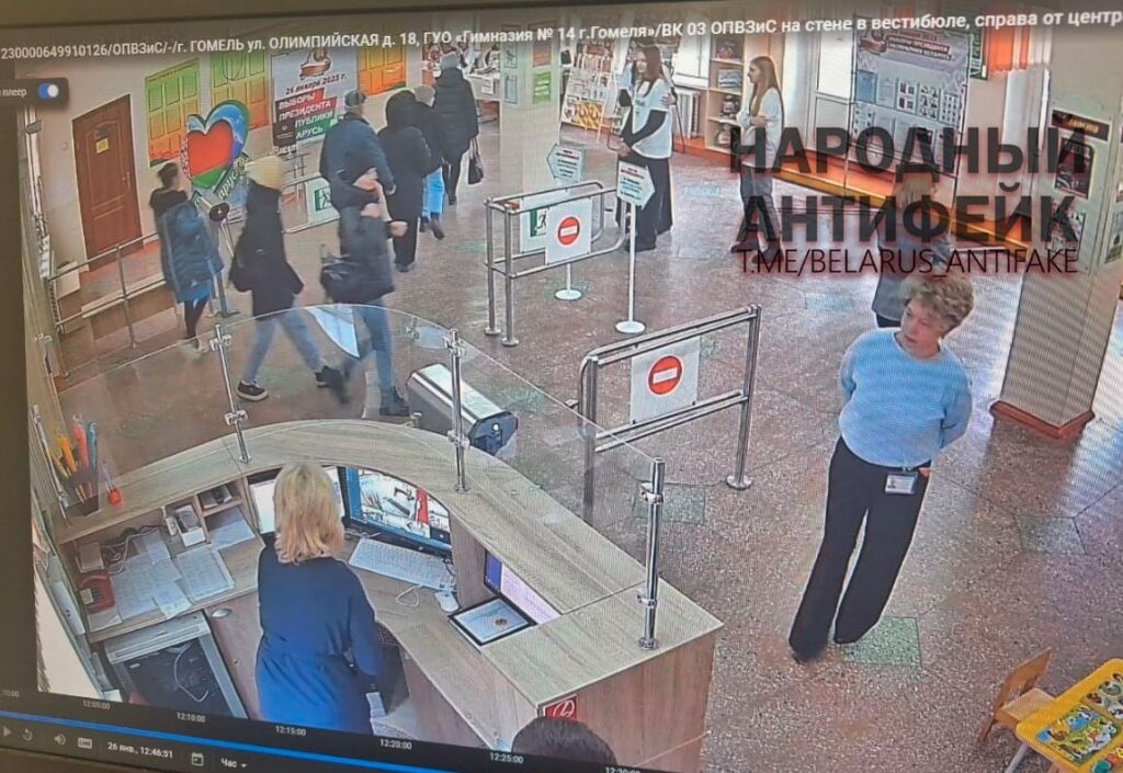 На самом деле это видео было снято задолго до начала голосования. На видео опознали гомельскую гимназию гимназия №14. И в день выборов на избирательном участке, размещенном в этом учебном заведении, было не протолкнуться. На камерах видеонаблюдения зафиксирован нескончаемый поток избирателей, которые приходят целыми семьями, чтобы отдать свой голос.