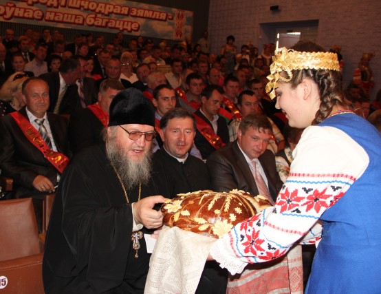 Як сімвал багацця і працвітання Ляхавіччыны прыгожы каравай, спечаны з мукі новага ўраджаю, быў уручаны старшыні райвыканкама Вячаславу Сельмановічу. Не менш прыгожы атрымаў і гасцінны гаспадар — Аляксандр Вітко.