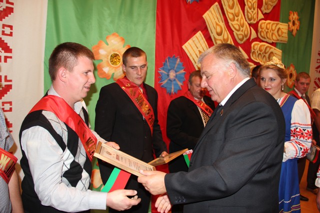 “Наша зямля славіцца шчырымі, працавітымі, таленавітымі людзьмі. Гэта, дзякуючы вам, шаноўныя хлебаробы, мы па праву ганарымся сёлетнімі намалотамі. Менавіта мудрасць аграрыяў, набытая за многія гады, вылілася ў такі важкі каравай. Дзякуй вам за нястомную працу, за адданасць справе”, — звярнуўся кіраўнік раёна да герояў свята.