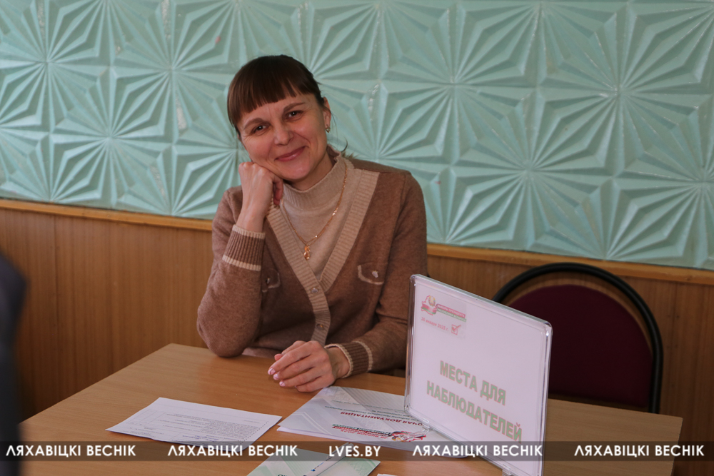 студзеня. Выбары на нашым участку праходзяць спакойна, ціха, усё згодна з выбарчым заканадаўствам, кожны чалавек галасуе асабіста, ніякіх эксцэсаў ці непаразуменняў не ўзнікае, парушэнняў не выяўлена. Для выбаршчыкаў створаны дастойныя ўмовы. Я таксама выканала свой грамадзянскі абавязак – прагаласавала за стабільнасць і мір у Беларусі.