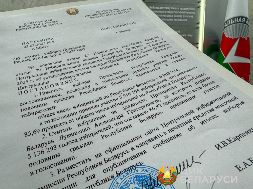 ЦИК Беларуси утвердил итоги выборов Президента Республики Беларусь