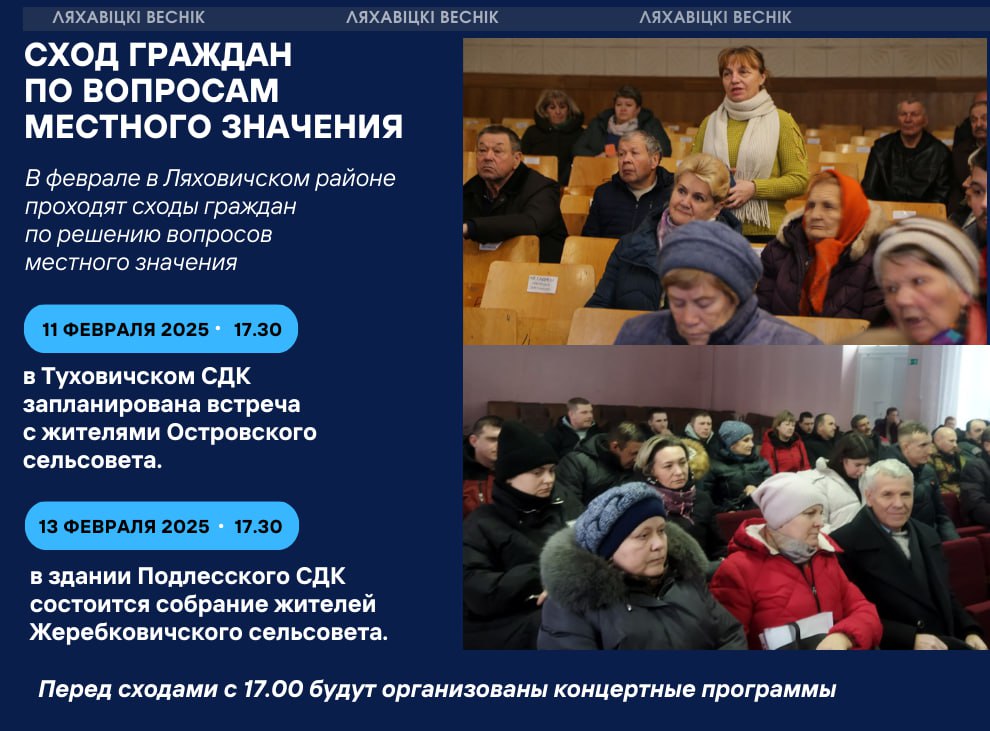 Навіны В феврале в Ляховичском районе продолжаются сходы граждан по решению вопросов местного значения 05/02/2025 444 redakcyja