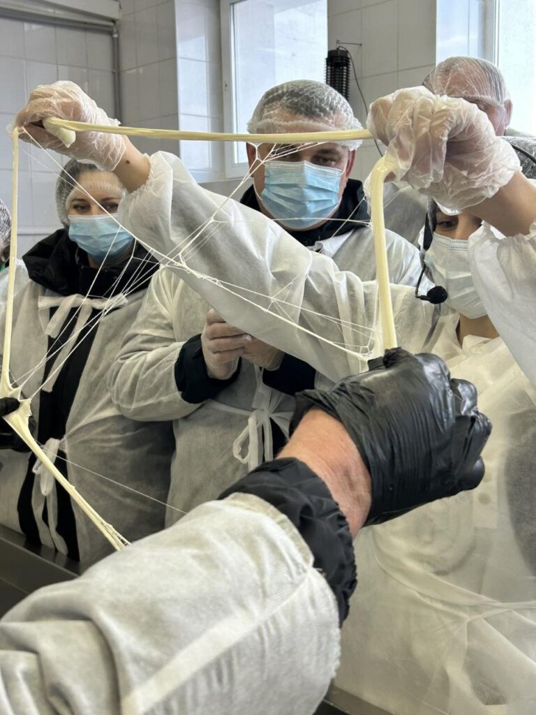 Во время экскурсии узнали о секретах сырного дела. Самое интересное, что выдалась возможность поучаствовать в мастер-классе по изготовлению сыра моцарелла и продегустировали своё творение.