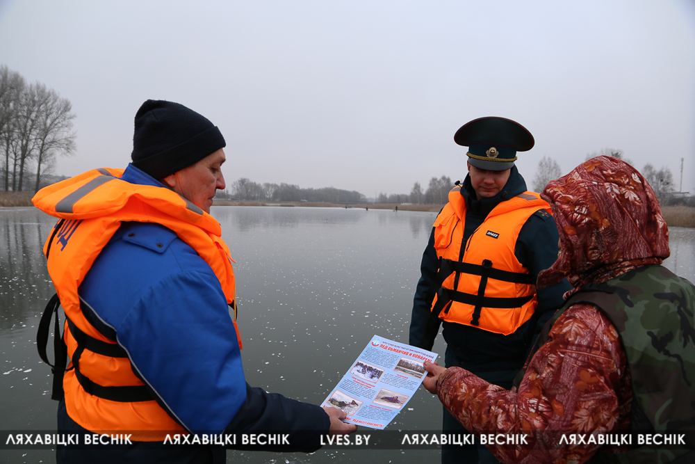 Лакацыю ракі Ведзьмы ў Ляхавічах выратавальнікі праманіторылі раніцай у панядзелак. Нягледзячы на мінусавую тэмпературу, каля лунак знаходзіліся пяць рыбакоў, з якіх толькі двое былі ў выратавальных камізэльках. А без іх выхад на лёд забаронены. Старшыня раённай арганізацыі Асвода Аляксандр Шчаўроўскі падкрэслівае, што выхад на лёд без адпаведнай амуніцыі можа абярнуцца бядой. Аматары зімовай рыбалкі павінны памятаць, што лёд толькі стварае бяспечную карцінку. На справе нават пры таўшчыні лёду не менш за