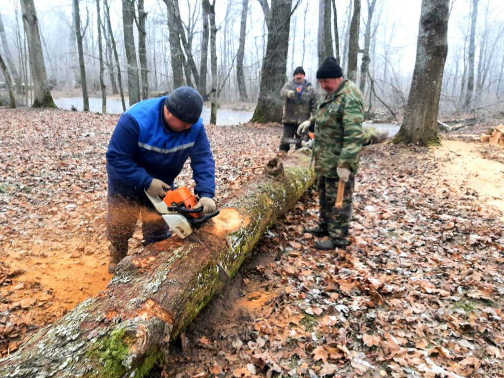 В данное время активно ведутся работы по расчистке территории парка бывшей усадьбы Черноцких от поваленных деревьев.
