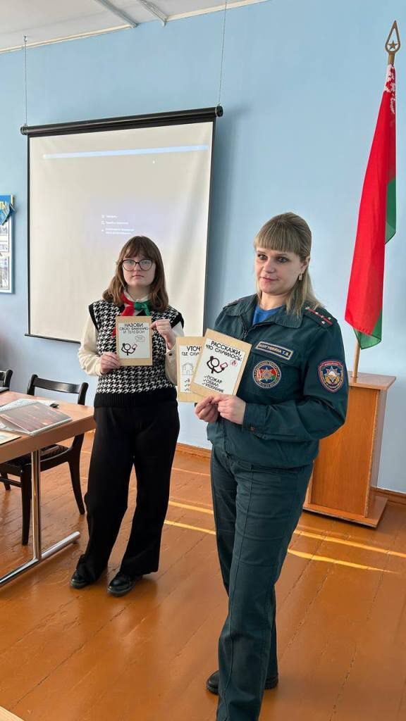 В этот раз инспектор сектора пропаганды и взаимодействия с общественностью Ляховичского районного отдела по чрезвычайным ситуациям Татьяна Колгушкина и председатель районной организации Освод Александр Щавровский посетили ГУО «Жеребковичскую среднюю школу имени М.Г.Минкевича».