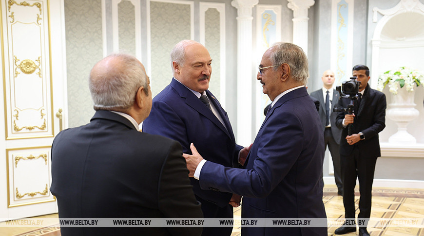 «Господин Хафтар, прошу считать, что вы приехали к своим друзьям, к себе домой. Много о вас читал, много слышал, много рассказывали мне. Но, к сожалению, встречаюсь впервые. Я хочу, чтобы вы знали, что мы очень хорошо осведомлены о ситуации в Ливии, очень хорошо знаем Ливию. У меня к вашему народу особое отношение, я бывал в Ливии в свое время. Конечно, сегодня это другая Ливия. Но вы должны знать, что мы готовы сделать для вас все, что вы увидите полезного в Беларуси», — сказал глава государства.