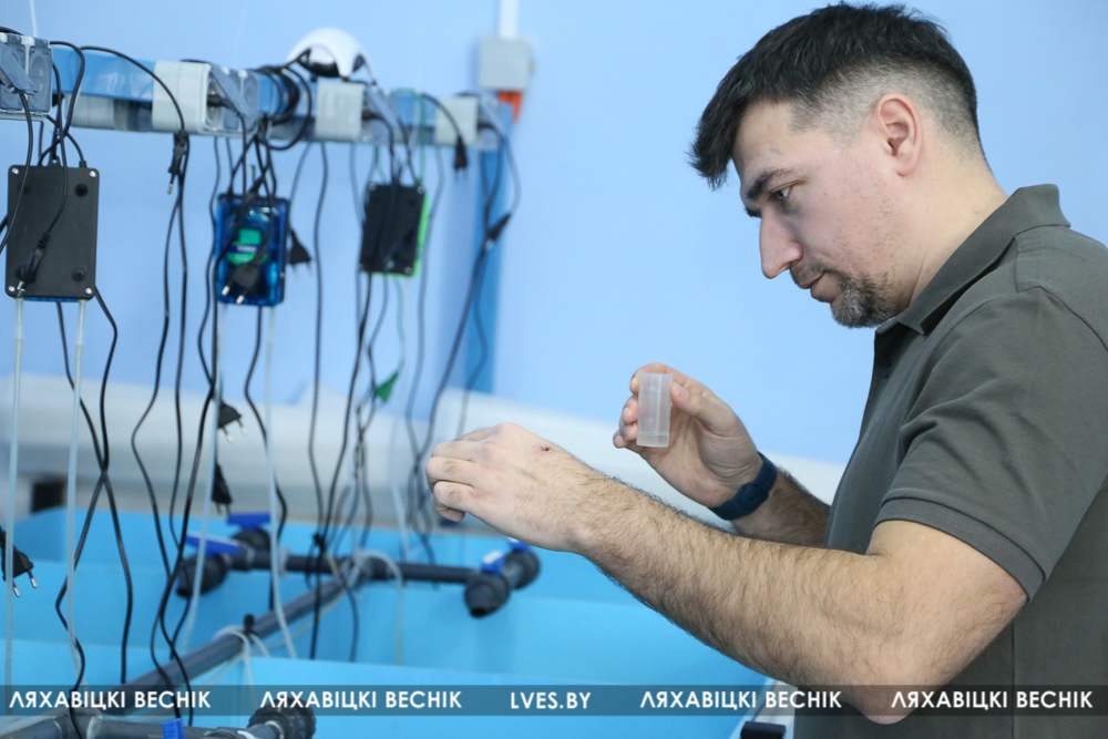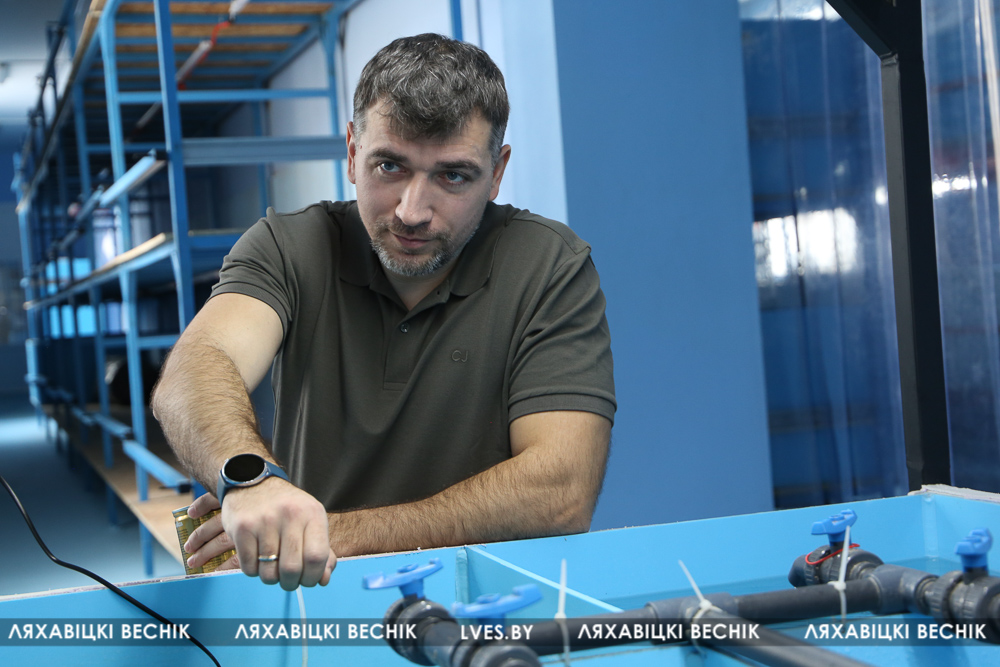 – Заўжды цягнула на радзіму. Сам з Баранавіч, ваш сусед. Адлегласць да Альхоўцаў па маскоўскіх мерках – зусім не адлегласць. Сюды прыязджаю кожны дзень – вытворчасць патрабуе скрупулёзнасці, павышанай адказнасці. Пачынаю дзень з размінкі – ацяпляю памяшканне, дарэчы, экалагічнымі пелетамі. Затым аналіз вады – ад яе стану залежыць і выжывальнасць крэветак. Затым кармлю падапечных, займаюся іх сартаваннем, прыбіраю, сачу за фільтрацыяй… Пакуль адзін за ўсіх. Дарэчы, калі вытворчасць пакажа вынік, на ферме плануецца стварыць як мінімум пяць працоўных месцаў. Для мясцовых жыхароў і не толькі такая навіна, думаю, за