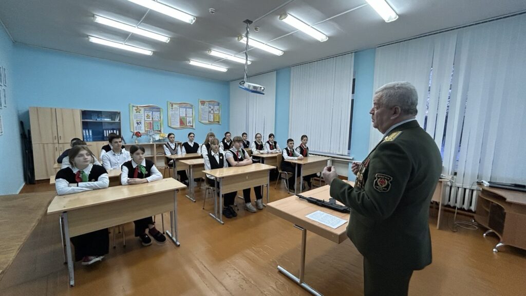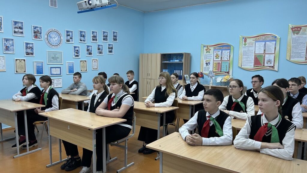 Владимир Михайлович рассказал учащимся 8-10 классов о том, что Белорусский союз офицеров является одним из ведущих патриотических объединений Беларуси, деятельность которого направлена на сохранение и приумножение военных и армейских традиций.